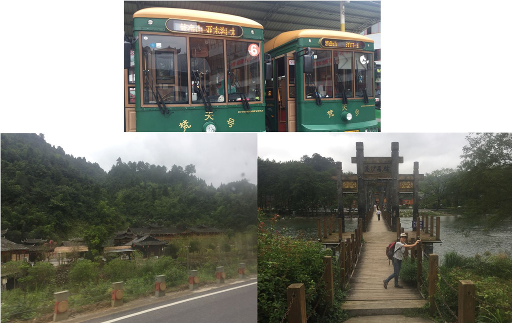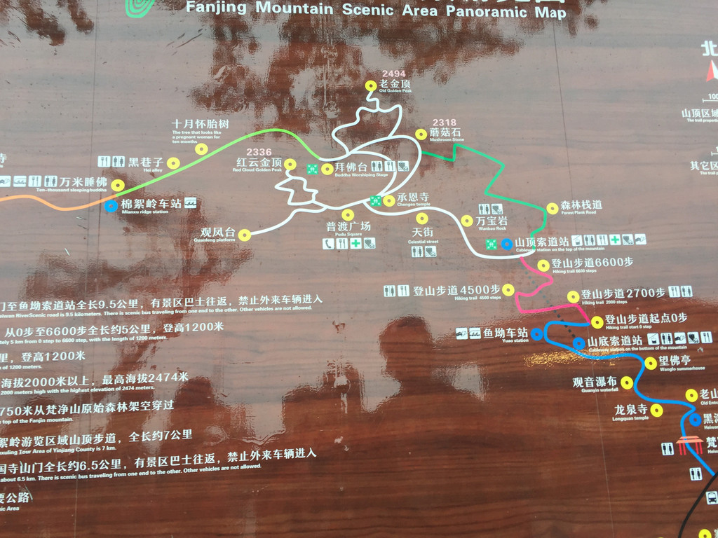 一早起来天阴阴的,至少没下雨,决定去爬梵净山;寨子里吃了早点,在问怎么坐车去梵净山的时候,边上也在吃早点的一对夫妇愿意带我们,他们在贵州工作顺便自驾四处旅游!真好!进了景区要坐景区的摆渡车到山下,路上会经过龙泉寺,但不会停,总车程差不多10公里左右;