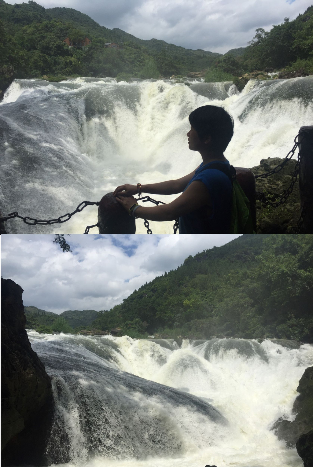 左边一张是9月份我们玩的时候拍的,右边的是3月份枯水季去玩的时候拍的,这个瀑布的名字叫银链坠潭,就是要在水少的时候,能在光滑的石头上看到水像一颗颗小珍珠连成一串,真的是银链坠潭;所以这个瀑布要枯水季看好看!