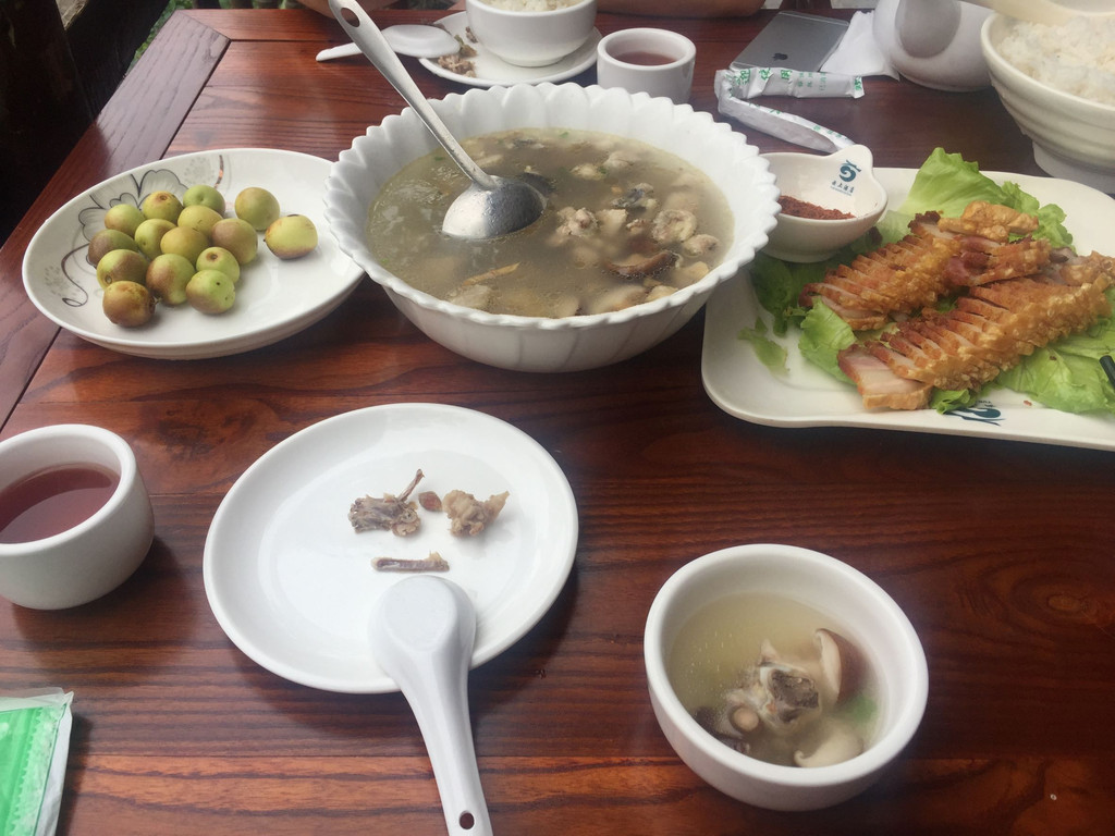 中午在肇兴侗寨尝了尝蘑菇和本地的猪颈肉,味道还不错;