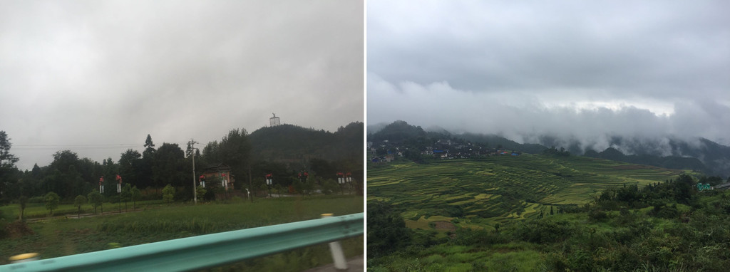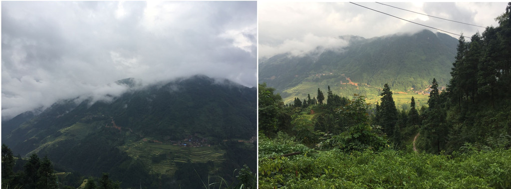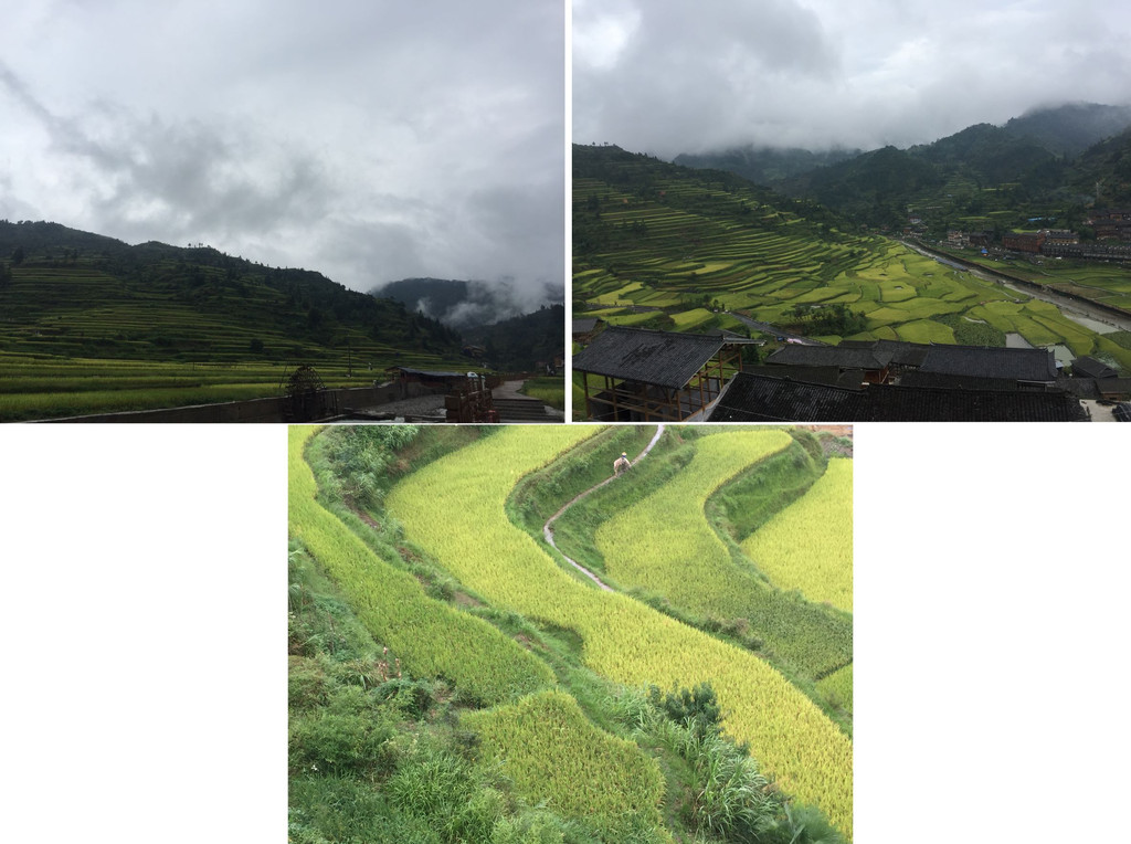 中午赶到榕江汽车站,附近吃了午饭,在汽车站问买票去加榜梯田,汽车站售票员说没去那的车,一下就懵了,可之前查攻略榕江有车去的,再三问,都说没有,不过榕江汽车站的售票员是真热心,居然帮我们去问司机,最后告诉我们买去党扭的车,还交代了司机到了告诉我们,太谢谢她了!虽然只有7、80公里,但几乎全是山路,开了3个多小时才到,党扭的路边把我们放了下来,原本路边是有小面包车的,结果淡季没有了,走进去有10公里左右,还下着小雨,根本不可能,好在没一会儿又有车来,一对老夫妻从从江过来,说订好了民宿,会有车来接,好在车上还有位置,但这家民宿居然订满了,在离民宿还有一小段距离的小村庄把我们放了下来,看了几家民宿,条件都不好,基本都是太简陋而且看不到景,不得已又给接了我们的民宿打了电话,居然有人退了房,总算住了下来,淡季也有风险啊;