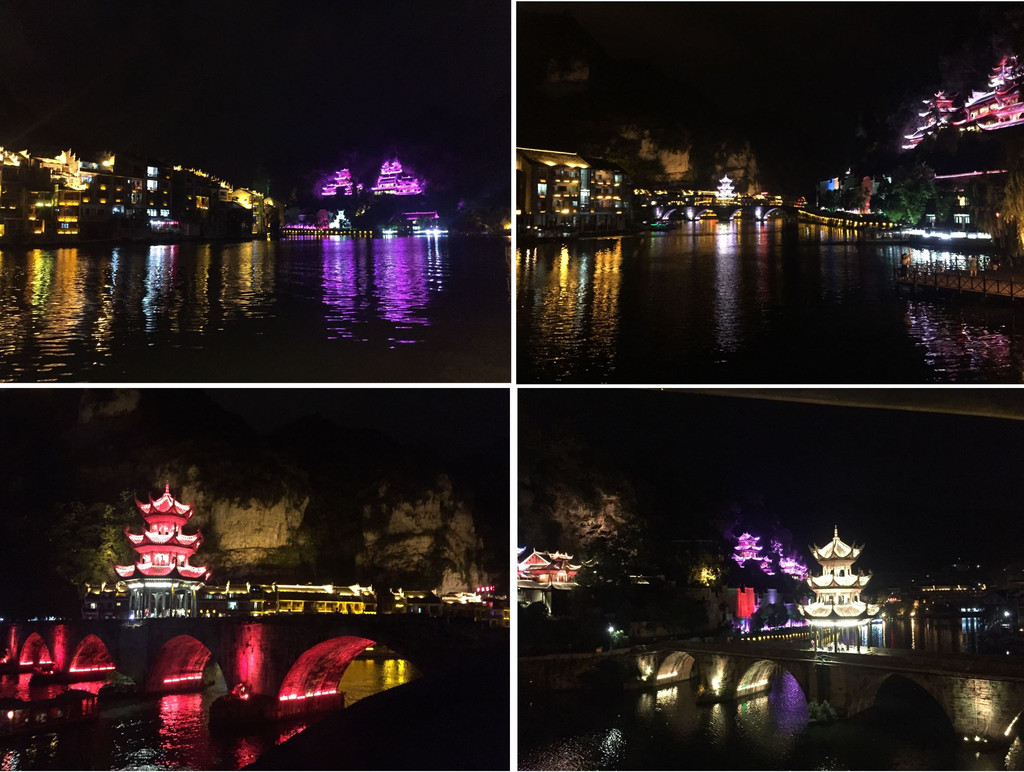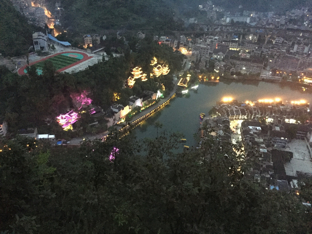 在古街吃的晚饭,回到西边的观景台时天已经黑了,西江的千户灯夜景出现;