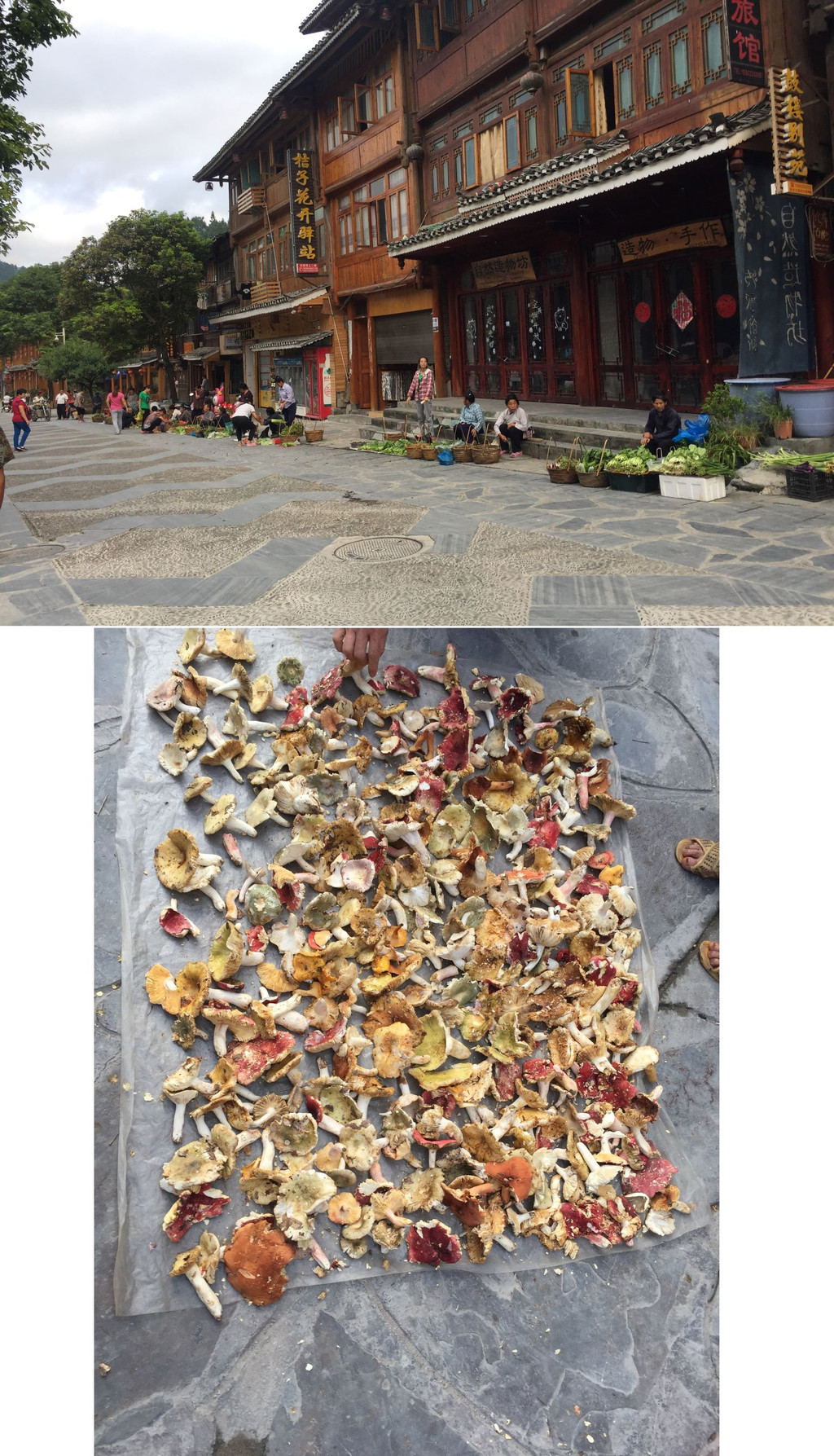 早起,主街上有早市,生活气息不错,还看到了蘑菇,真的是红伞伞白杆杆;拿着地图把5个鼓楼、花桥、戏台都转了一遍,在寨子里的小巷里走还是很有趣的;
