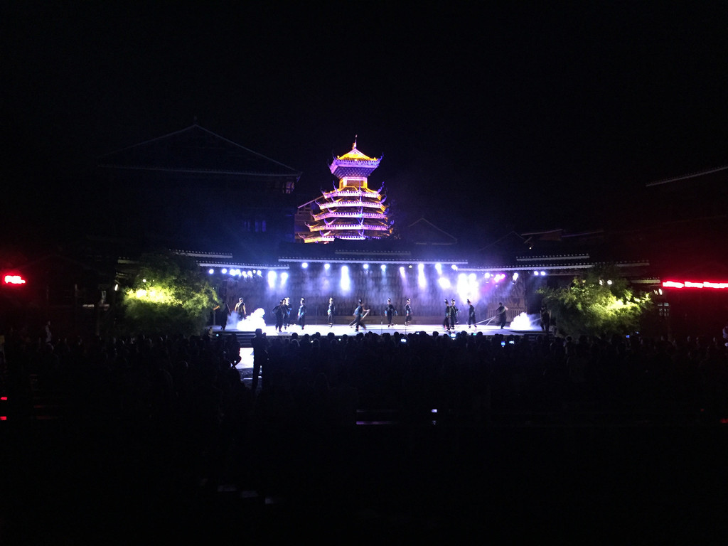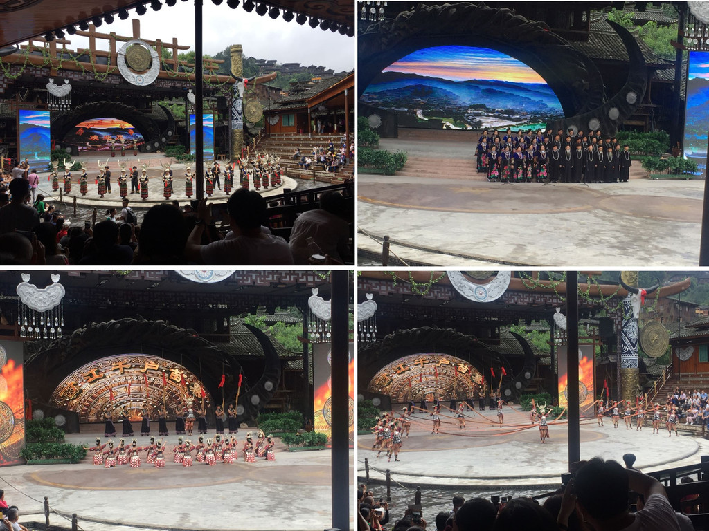 西江千户苗寨的旅游开放已经非常成熟了,到了先是迎接仪式,虽然是淡季,人不多,但仪式也没少,进景区后统一景区车进去,先到了剧场看演出,白天有几场演出是免费的,晚上的美丽西江是另需买票的;