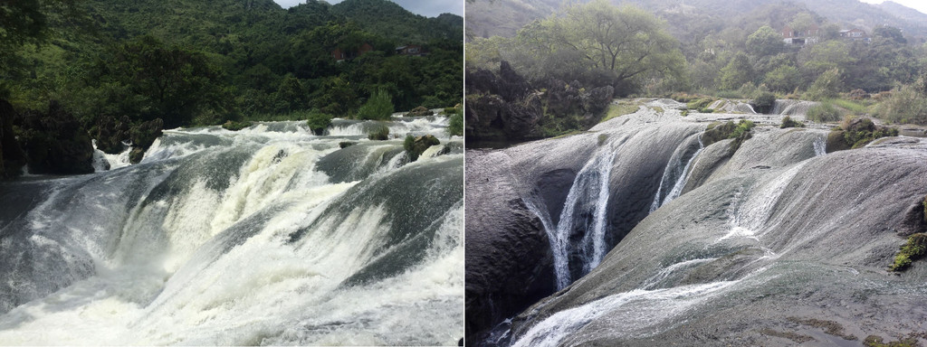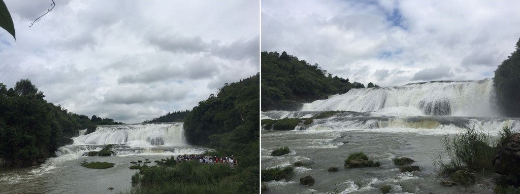 发张三月份去的时候拍的对比照,差别很大吧;但是,丰水季去的时候瀑布是更好看,但是因为水量大去瀑布后面的水帘洞的路封了,说是怕塌方,算是遗憾吧;