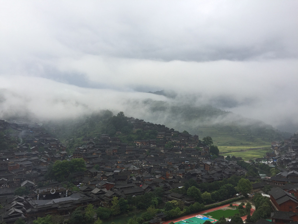 早上起来吃过早饭;再看了一下苗寨,清晨山谷中水汽朦胧,又是新的一天;