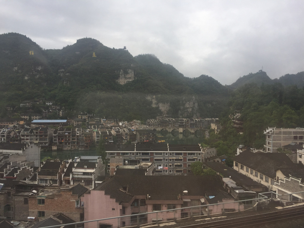 早起,趴在民宿阳台的栏杆上发呆,远处两山之间的桥梁就是铁路桥,也就是火车进镇远经过的地方,有火车远远的呼啸而过,如果是晚上能看到一长排亮灯的车窗,偶有鸣笛;