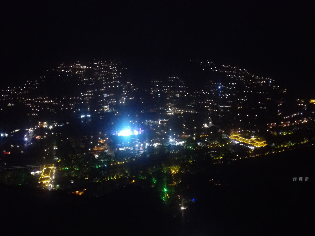特意晚点爬的石屏山,到山顶没多久天就黑了下来,古镇的灯亮了起来,这一天不知道是当地的什么节日,古城里很多地方在放鞭炮,星星点点的烟雾升起,让古镇有点朦朦胧胧;