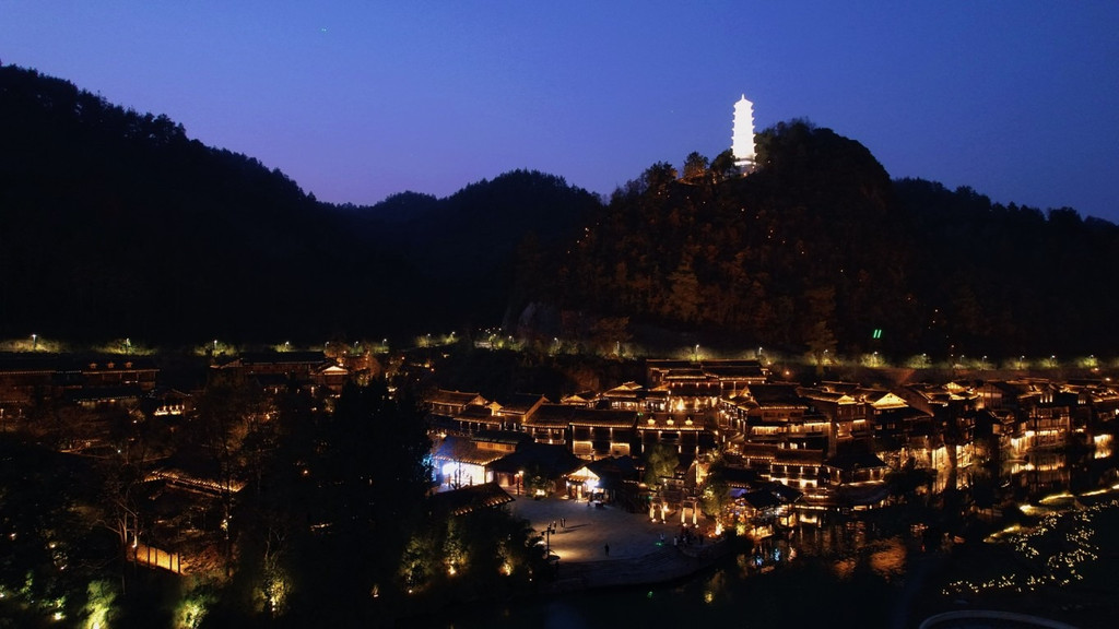 如果说白天的乌江寨是一幅宁静致远的水墨画卷,给人温婉又柔情的感觉。那么夜色下的乌江寨则是一张五彩斑斓的浪漫水彩画,给人更多的是惊喜与温暖,万家灯火倒映在江中,满满的人间烟火情。