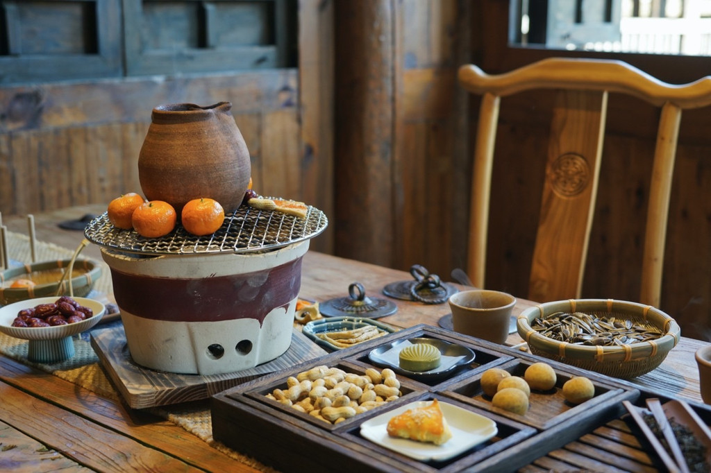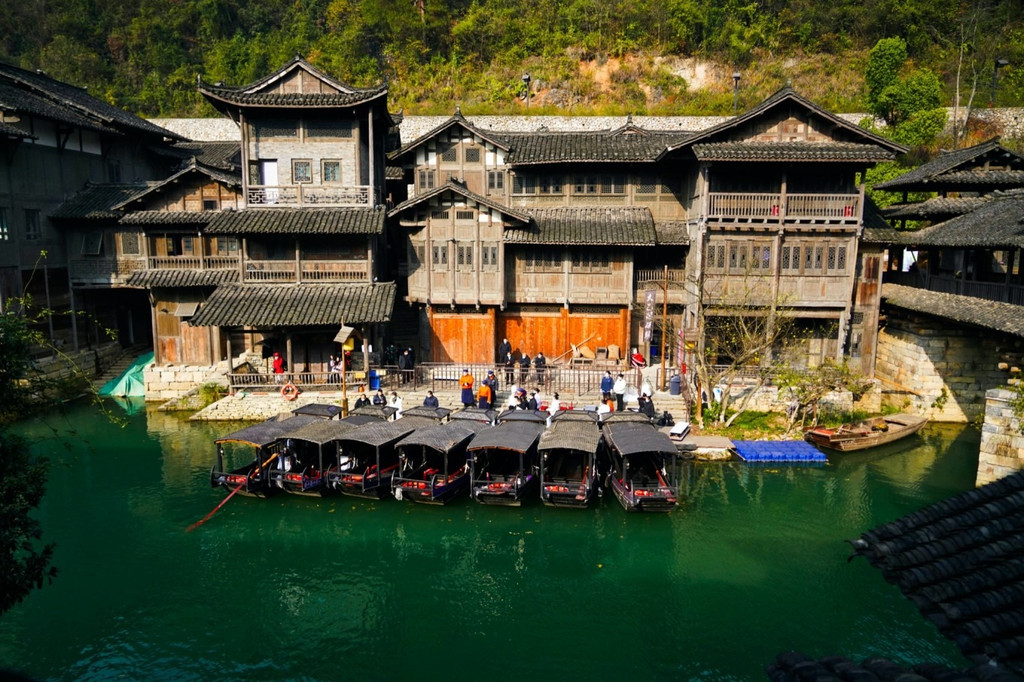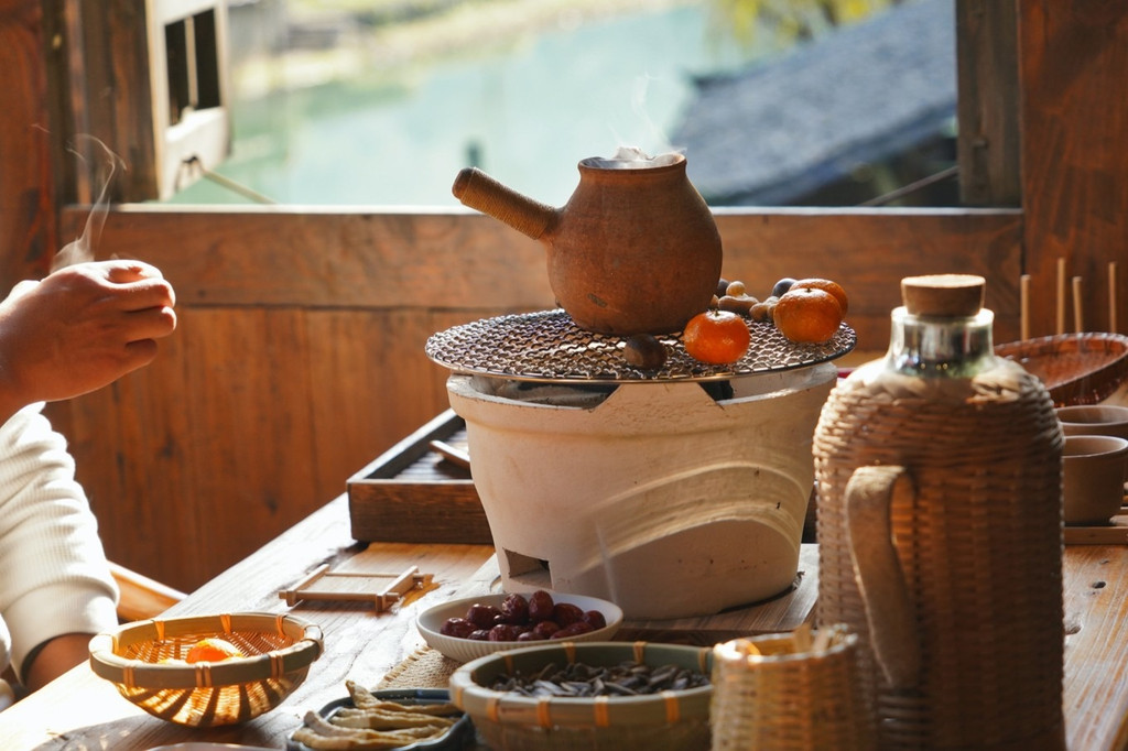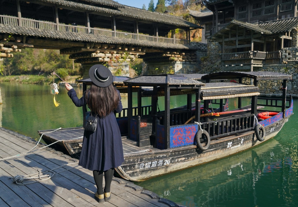 迎着暖阳,在小木屋里倚窗而坐,围炉煮茶,三五好友相聚于此,闲谈甚欢。来一杯热茶,慢品乌江寨的诗意风光。看着窗外来来回回的乌篷船,让这座恬静的古镇显得更为灵动。