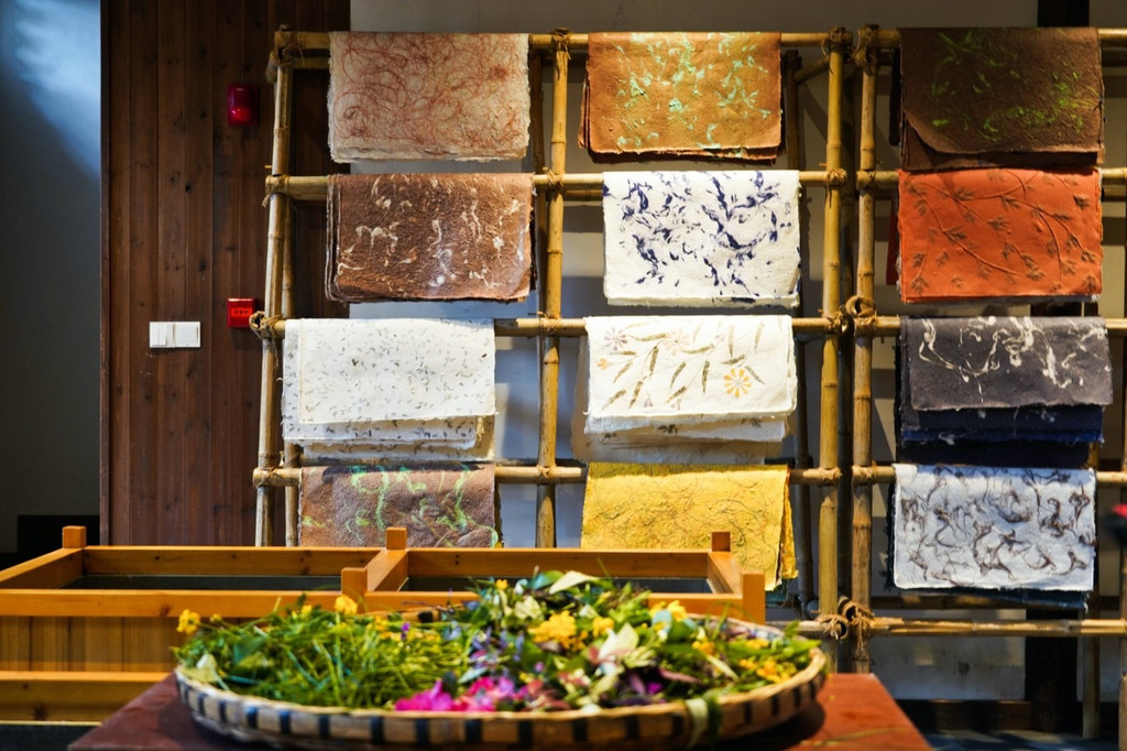 花草纸是源于 中国 最古老的手工造纸法制造出来的纸张,一度得到人们的追捧和喜爱。在乌江寨的乌纸坊,以植物入纸作画的传统古纸工艺,令人耳目一新。每个人的心中,多多少少都会有天马行空的想法。诠释内心的情感,取自然界中的花草,以此为媒,描写心中的美好事物。