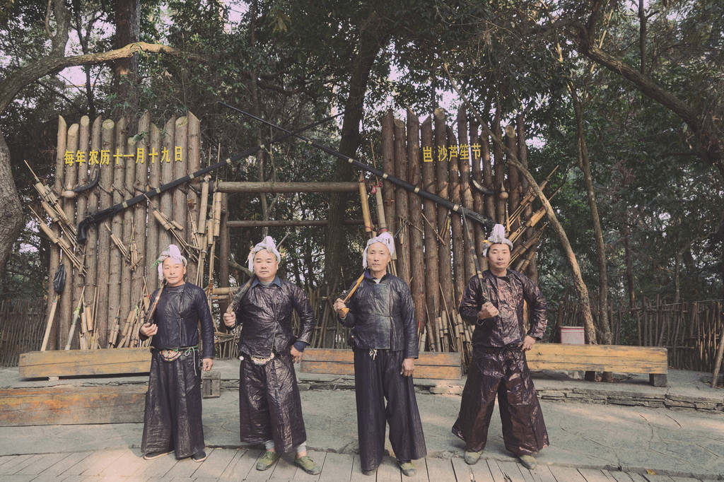 岜沙自称是古代蚩尤部落的一个分支,逐鹿中原蚩尤战败后,岜沙先祖几经辗转来到贵州大山深处的岜沙(苗语草木繁多茂盛之意),世代以狩猎和农耕为生。因此枪是他们生活的必备神器之一。