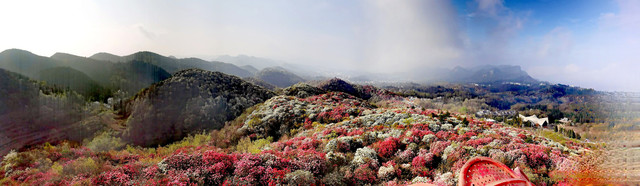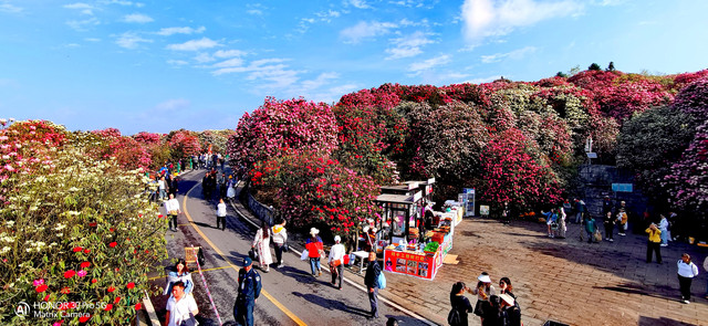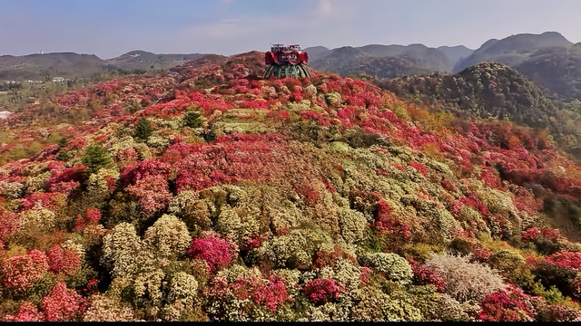 在景区最高观景点——数花峰观景台,鸟瞰四周壮阔的杜鹃花景色,山峦铺满着五彩缤纷的杜鹃花,让人感叹大地生辉无出其右。