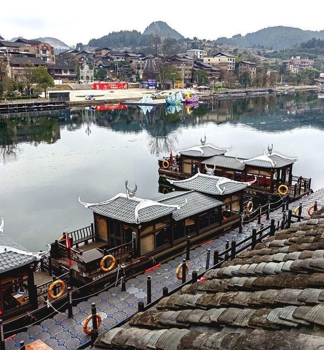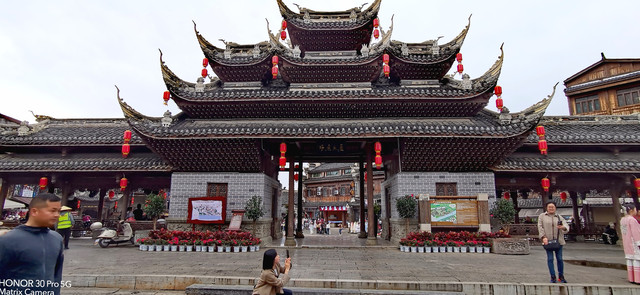 再次进入小七孔景区游览已近4小时,返回客栈午餐后,于14点多到达无门票的下司古镇。下司古镇雕花门楼,后面是芦笙广场,是苗族举行各种聚会的场所。