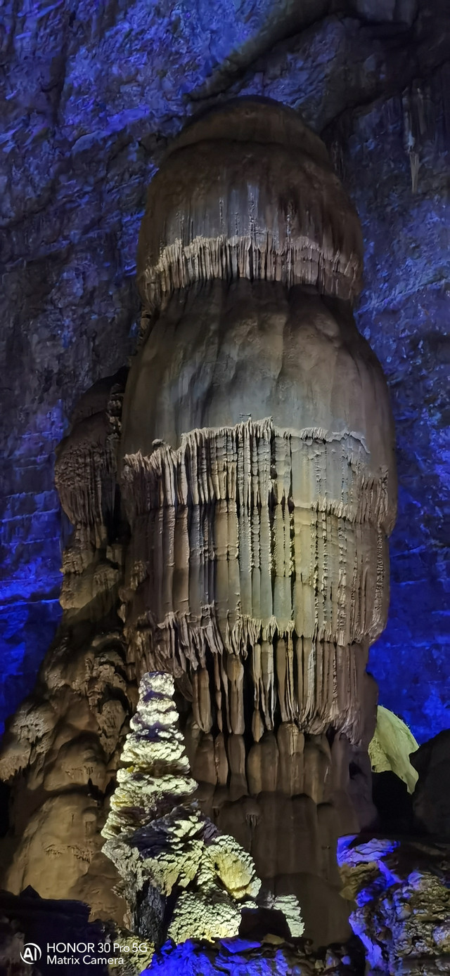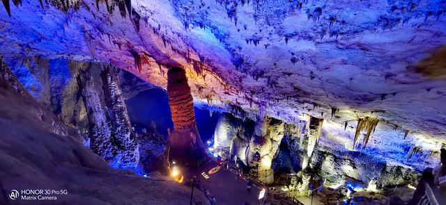 进入织金洞内顿时体感阵阵凉气,洞里较潮湿,观景路光线较暗,上下梯步较湿滑。