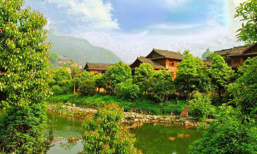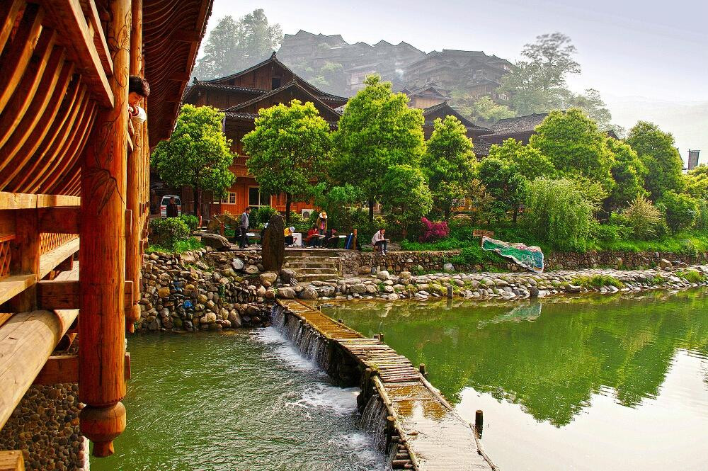 第一天:上海赴贵阳,宿贵阳。第二天:上午,赴榕江,游览三宝侗寨,下午,赴雷山,游览西江苗寨,宿西江苗寨第三天:上午,赴镇远,游览舞阳河,下午,游览镇远青龙洞等,宿镇远第四天:上午,赴铜仁,游览梵净山,下午,游览铜仁老街、锦江等,宿凯里第五天:上午,赴贵阳,游览南明宫,下午返沪。三宝侗寨这里有一年三熟的万亩良田大坝,有清澈见底、透明如镜的车江,江岸上有一排排长长的护堤榕树,有清代侗乡独一无二、铭刻侗汉文字的鼓楼,有气势宏伟上了世界吉尼斯纪录的三宝鼓楼;这里还是电影《秦娘美》主人翁珠郎、娘美的故乡,尊贵的客人进寨,好客的侗寨人会为你行"拦路酒"礼。着白色侗家服饰的少女,手捧酒盏,轻启朱唇,唱起了敬酒歌,香醇的米酒就着甜糯的歌声令人沉醉。这里保留着完好的侗族生活场景,家家务农,户户纺纱,寨头村中有最古老的侗族祖先"萨堂"庙。三宝侗寨的来历来源于一个历史传说:相传古老的三宝地区是一个长湖,湖的北端抵笔架山,湖的南端抵马鞍山,东抵九十九垴坡脚,三都、寨蒿、平永三条河都流入湖里,每条河各住一条龙,待雨停水退,长湖现底,三个龙宝分别落在乐乡塘、寨头塘和车寨塘。侗族祖先沿河迁徙来到这里,建寨落村,就以龙王留下的三个龙宝来命名,叫三宝。三条龙经常到湖里来游玩。有一年连续下了九天九夜瓢泼大雨,三条河同时涨水,湖水越涨越高,突然湖下端一声巨响,三条龙兴风作浪下南海,留下了三个龙宝。三宝鼓楼侗寨中有许多鼓楼,最注目的是"三宝鼓楼",鼓楼内外,绘画和雕刻记载中国侗族多支系的古风遗韵、传统服饰、民间习俗是一道亮丽的风景。古榕树进寨后,都柳江沿岸我们看到一大群古榕树。植于清代乾隆年间,距今已有300多年历史。这些参天巨树,根深叶茂,树影婆婆,彼此之间根系相连,枝叶相拥,形成一片罕见的榕树群。像一个绿色天盖。它那墨绿色的叶子在任何季节都苍翠欲滴,闪着腻脂和锦缎似的柔润光泽,给人沁凉、舒适的感觉。而它的树干却那样苍老,仿佛织染了青铜般的深褐色,毕露出清奇的筋骨,好像一个体态龙钟的老人在沉默地注视这种有着年轻的叶子和古老躯干的树木,是安详的庇护。珠郎娘美雕像在古榕群间有一条小路,当地人叫花街。鹅卵石镶嵌成了十二生肖的图案。街尾有一尊白色大理石雕像,雕塑由一男一女组成,男的叫珠郎,女的叫娘美。这里就是娘美的故乡这是一个中国式的"罗密欧与朱丽叶"的故事萨玛祠侗家人称萨玛是大祖母萨玛祠就是侗家人的圣母祠,它是侗族人民祭祀女神"萨玛"的祠庙,整个三宝侗乡共有9座。祠庙内都有用砖瓦盖成的小屋,屋中央用石头垒成石堆,中间插一把半开的纸伞,周围有12或14个小木椿或小石堆。纸伞和木椿上披挂剪纸。这些木椿、石堆表示"萨玛"之位。祠庙外都种植有一株常青树,象征圣母"健康长寿"。每月初一、十五烧香上茶祭祀;每年正、二月间要隆重祭祀,祈求萨玛保佑村寨子人丁安宁,六畜兴旺,风调雨顺,五谷丰登,全族妇女盛装打扮参加祭祀活动,有人赞:萨玛节就是三宝侗族的妇女节。三宝侗族喜欢聚族傍河而居,寨边河岸上栽有四季常青的护堤榕树,寨内木屋与窖子屋错落有致,鳞次栉比,江水、榕荫、村寨、田园构成一幅幅美丽的风景画。有一首侗族的祭祖歌也唱到:想当初,真遥远,我们侗族祖先哪里来,老人说,老人摆, 我们祖先从梧州、音州迁上来。古州地方宽,三宝坝子平,我们祖先很高兴,决定在这里建寨落村。西江苗寨到达西江千户苗寨,停车场下来看到挂有“西江千户苗寨”牌匾的大门,从这扇大门到寨子还有1.5公里的路,可以坐电瓶车,也可以走路。西江千户苗寨,位于贵州省黔东南苗族侗族自治州雷山县东北部的雷公山麓,距离县城36千米,距离黔东南州州府凯里35千米,距离省会贵阳市约200千米。由10余个依山而建的自然村寨相连成片,是目前中国乃至全世界最大的苗族聚居村寨。十余个依山而建的村寨相连成片,山坡上层层叠叠苗家木质吊脚楼,咖啡色的老房子依着碧绿的群山,白水河将寨子一分为二,这就是中国最大的苗族聚居村寨——居住着“西”氏族苗族的千户苗寨5000多年前,以蚩尤为首的九黎部落与炎帝、黄帝部落发生剧烈的武力冲突,蚩尤被黄帝擒杀。大部分苗族先民被迫开始大迁徙,传说西江有千年以上历史。西江苗族是苗族先祖蚩尤的直系后裔。清澈见底的白水河穿寨而过,河流东北侧的河谷坡地上房屋多依山势而建,吊脚楼点缀于山水之间,房前屋后,竹林芭蕉簇拥。在群山的环绕下,苗寨上游大片的梯田,伴着青山绿水、斜阳草树、雾霭烟雨,如诗如画。千百年来,西江苗族在这里日出而耕,日落而息,吊脚楼上吊着大蒜、包谷、红辣椒、蓑衣、斗笠。屋顶飘出袅袅炊烟,门前的溪水里,鸭鹅嬉戏,吊脚楼前的大石头上,苗族妹子在捶洗衣服,唱起了热烈缠绵的情歌,棒棰捶在石板上,发出清脆悦耳的响声,好似在演奏一曲深情的恋歌。千户苗寨是一座露天博物馆,展览着一部苗族发展史诗,每年的苗年节、吃新节、十三年一次的牯藏节名扬四海,观赏和研究苗族传统的大看台。每到黄昏时分,千家万户就亮起了灯。随着天色越来越暗,西江千户苗寨变成了灯的海洋,可以看到苗寨呈现那牛头的形状。风雨桥沿着白水河走走,看看河上有屋檐遮风挡雨的风雨桥,矮矮窄窄用木头平铺的栈桥。观景台清晨来到观景台,薄