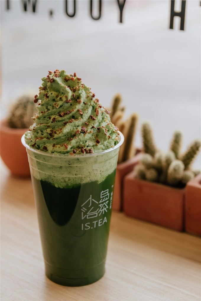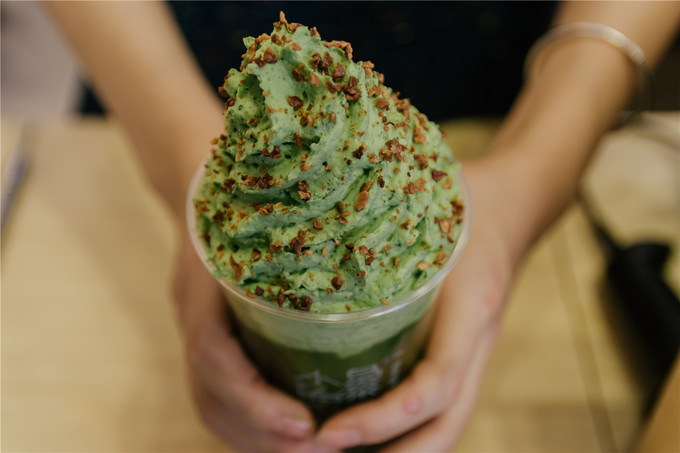 上面这一杯壮观的呢,是抹抹岛。抹茶打底,上面是 宇治 抹茶调制的蓝风车淡奶油,宛如一座青山,加上坚果碎,颜值也是超高!就像一座孤岛一般。而且小岛加抹茶喝起来也是一点都不腻。