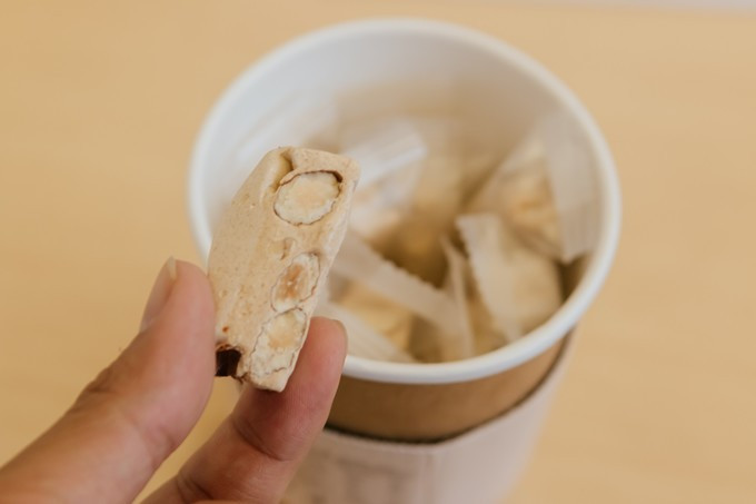 老板还让我们品尝了他的新产品:奶茶牛轧糖和抹茶牛轧糖,据他说全 厦门 只有他们家有抹茶口味的牛轧糖呢~嘻嘻,刚好可以带一点回去给我家小外甥,果断买两杯~