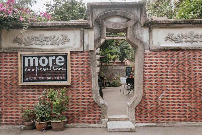 拍摄末尾时偶然被一家叫【More咖啡】的小店咖啡香所吸引,果断拉着摄影师小哥进去消费+拍拍拍。 鼓浪屿 果然是一个充满惊喜的地方,一个独特花盆型的小门进去是另一番景象。这是一座老式的小洋房,花砖地板/墨绿色木窗/墙上的挂钟/各式老物件/院内的三角梅长到了围墙外,每一处都覆盖着浓浓的文艺气息,摄影师小哥出片那是顺顺利利的~
