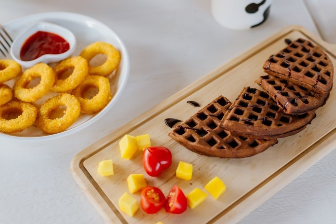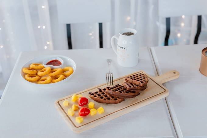 招牌奶茶14元/可可松饼28元/鸡肉洋葱圈18元