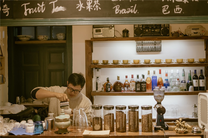 拍完之后索性就在店里歇会儿,点了一杯热拿铁+慕斯蛋糕,咖啡醇香四溢,蛋糕绵密而不腻,在一个旅游区里居然有这么纯正的咖啡馆,挺意外。跟老板聊过之后,知道了这也是一家夫妻店,老板就是典型的咖啡狂热爱好者,从对咖啡什么都不懂到现在样样精通,凭着的就是骨子里对咖啡的执念.老板娘又热衷于各种手作,因此俩人花了不少精力才从华侨手中租下了这栋小洋房的一楼,做了这一家有情怀的咖啡馆+手作工作室。