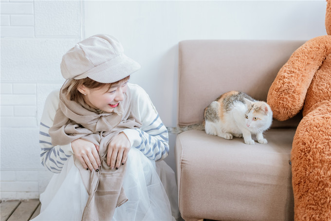 而且厨房就在吧台.做的美食全透明化让人放心.店内墙面全都是玻璃.采光很棒.猫就懒洋洋在沙发上睡着,和前台工作的老板攀谈了才知道这是两个女孩子一起开的西餐店_(:з」∠)_有一家自己的小店也是我的梦想啊羡慕.重点来了.其中一个老板居然还会摄影.果断把我的单反供出.求着小姐姐帮我拍了几张美美的照片。(店里这布局也超级适合拍照呢)