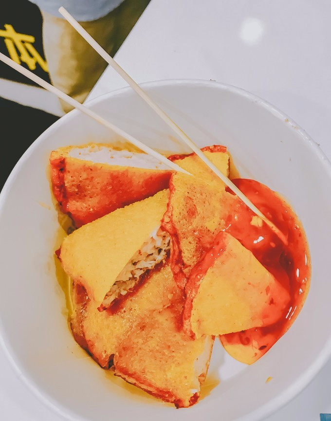 另外我还发现了一家深藏在小巷里的海蛎饼,味 道真 是不要太好,有别于外面吃的海蛎煎,葱+胡萝卜用淀粉和一起炸成饼状,里面包裹着半熟的海蛎,炸物的香气加 上海 蛎的鲜甜,一口就让你味蕾打开,且一个只要三块钱!位置在龙头路旁边一条叫市场路的小巷不太好找,但我发现它对面就是圆通快递,所以想吃的亲们可以地图搜圆通找过去哟。