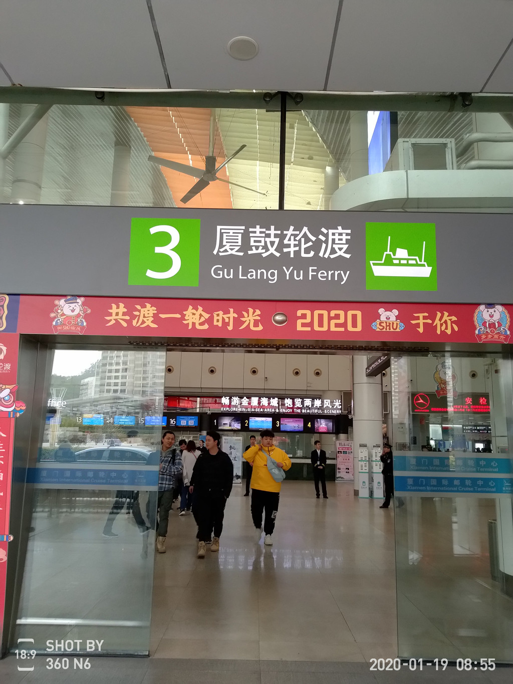 我只买到了上午的一班普通船票,上午10:30发船。8:00就从住处出发,骑上单车一个小时早早赶到了厦鼓码头,宁早勿晚,不打无准备之仗。去往鼓浪屿的游客确实很多,候船大厅里人山人海,经过安检,10:30准时发船。厦门码头已经不用打印船票,直接刷身份证进站即可,比较方便,返程也是,因此务必带好二代身份证哦!