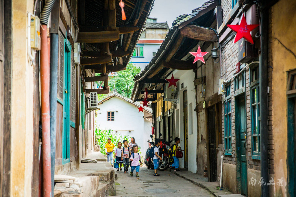 车开到山脊有一个停车场,往下走就是太平古镇,长征街位于古镇中心位置,建筑沿山逐级而上,台阶数百级,木屋大多建于清末民初,融合了江西建筑风格和川南民居的建筑元素。