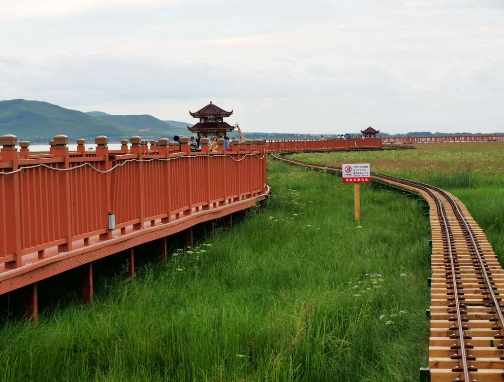 景区内有观鸟长廊、步道、木质半封闭观鸟屋,鸟岛等,我们在观鸟长廊看飞鸟在湿地上空自由飞翔,非常壮观,目前鸟类达180多种。