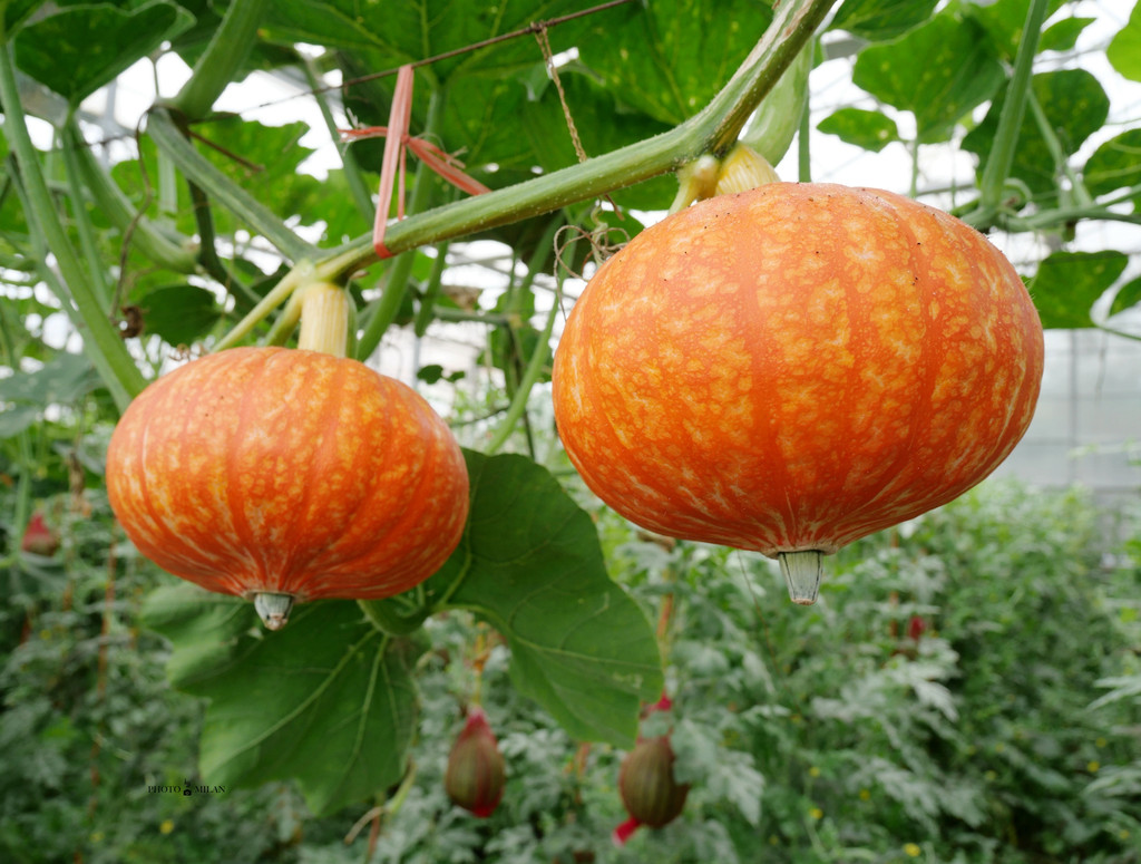 园内大棚内种植的绿色蔬菜,南瓜,葫芦西瓜,绿叶菜,都会成为生态园餐桌上的美食,让人羡慕不已。