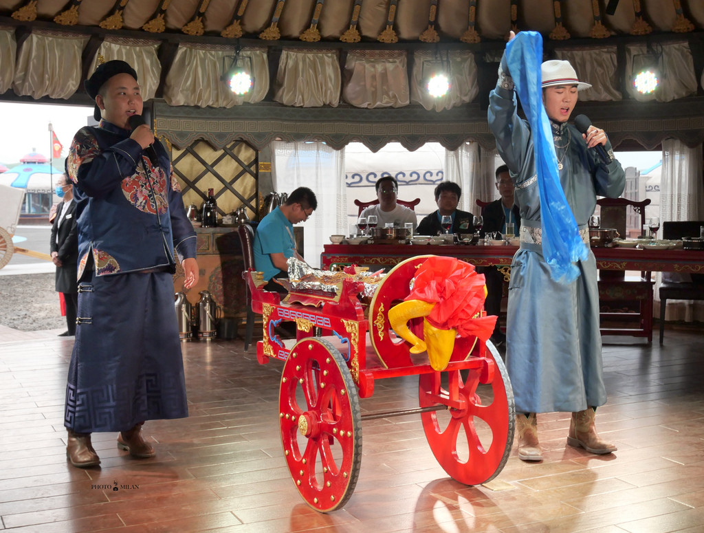 第一次穿着蒙古袍盛装参加晚宴,草原这份厚礼让我感动,在库伦淖尔旅游度假区成格勒广场,我们换上度假区准备的蒙古族袍,参加诈马宴,仪式隆重,精彩的蒙古歌舞表演,美食诱人味蕾。