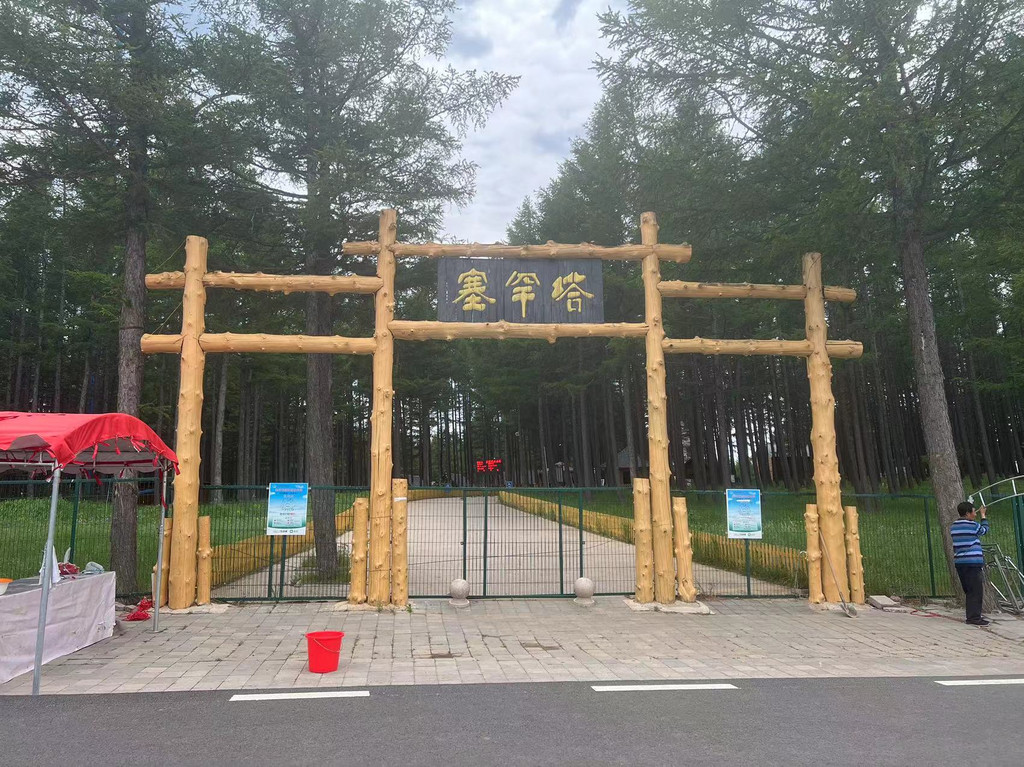塞罕塔公园大门关着,有人在干活。我俩沿着公路在园子外溜达,结果发现有个侧门开着,于是进去转了一圈,里面挺大,我们不知道让不让进就没往里走。