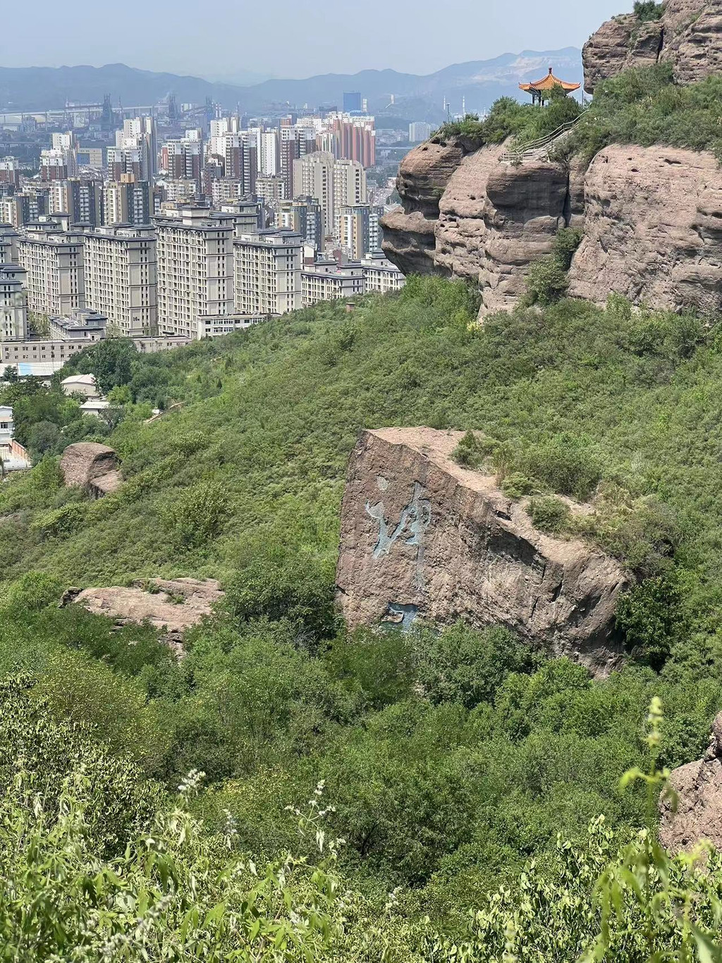15:30出发,等了有十多分钟,16:00下车,车站距景区大门还有挺长一段路。大约走了15分钟,由于天气太热,我俩没上到最高处,在半山腰观景平台玩了会儿,17:00下山。下山途中遇到两拨上山的,大概是旅游团,都是老年人,到门口时发现大门半开着,售票亭关了。大概17:00以后就不用买门票了吧。自驾车可以把车开到公园门口,停车场没见到收费标牌,大概是免费的。