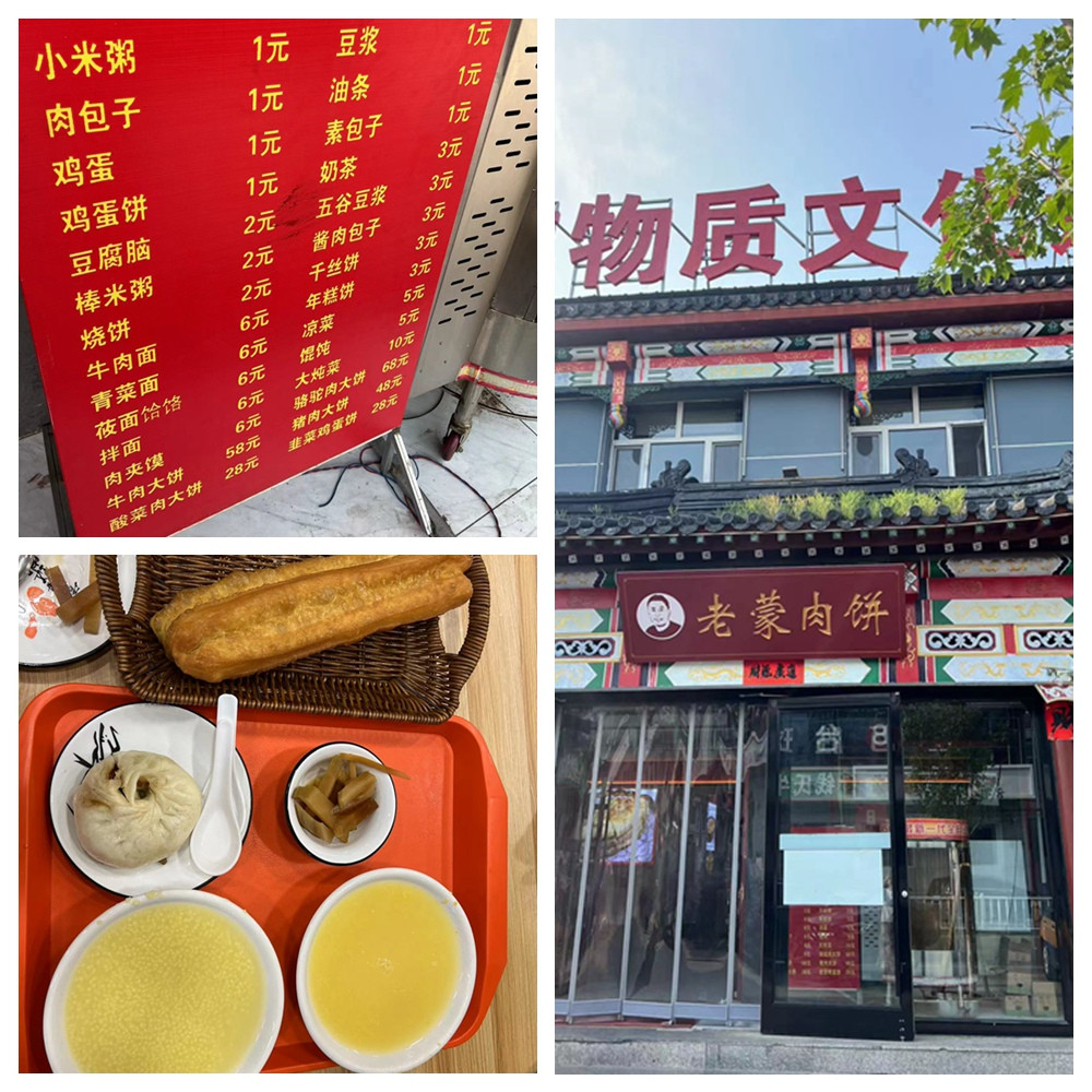 围场满族蒙古族自治县:老蒙肉饼。推荐。酱肉包味道一般,油条很好,豆浆和豆腐脑都卖完了,只有粥。提供免费咸菜。