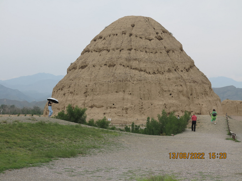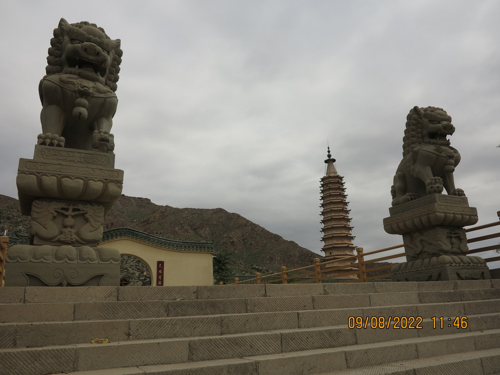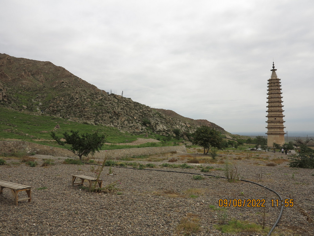 回酒店带上老妈宝宝。先去市人民医院做了核酸,医院边上就是承天寺塔,看看外观,停车不方便,也就没有进去。想去宁夏博物馆看看,无奈中卫疫情,博物馆暂时闭馆。驱车直接去了贺兰山脚下的拜寺口双塔,游客不多,不要门票,双塔很远就能看到,背后就是贺兰山,感觉不错。双塔具体的建造时间已经没办法考证了,但根据双塔周围散落的大量与西夏王陵相似风格的建筑构件残片来看,这里应该早在西夏时期就已经建有很多佛寺。双塔无疑是西夏人留给后人的珍贵佛教文物遗产,是西夏皇帝元昊贺兰山避暑行宫的重要组成部分。