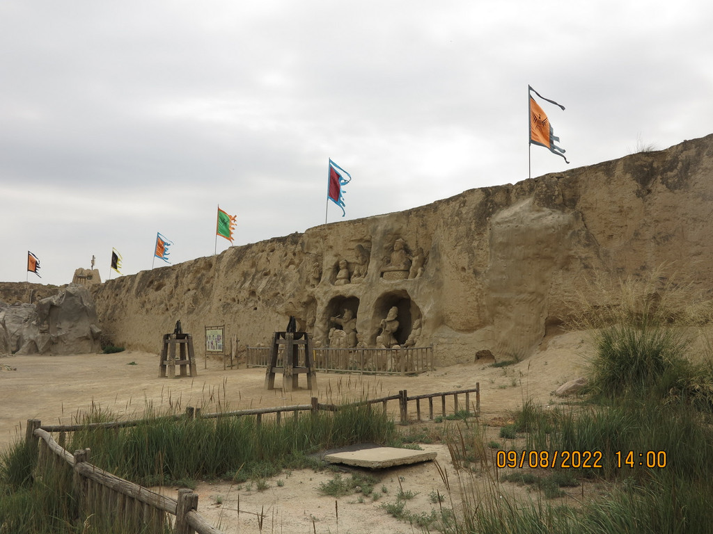看完海宝塔,驱车去银川的水洞沟景区,这里属于银川最红景点,位于宁夏灵武市临河镇,景区横跨宁夏银川与内蒙古鄂尔多斯。景这里被誉为“中国史前考古的发祥地”,这里开发了以旧石器时代为背景景区,在中国最早发掘的旧石器时代文化遗址—水洞沟遗址上进行开发建设,结合了明长城,各种古代军事工程,各种地质地貌,建设的相当不错。买了178元的套票,进入景区先看博物馆,了解水洞沟遗址以及4万年前这里人类活动情况。出了博物馆,一路慢慢游览,张三的小店休息片刻,坐电瓶车去水洞沟的遗址点,宝宝在遗址上体验了考古发掘,挖到了喜爱的化石。遗址边就是明长城城墙遗址,翻过城墙就步行进入内蒙古,内蒙这里全是沙漠,这时换骑骆驼前行,下了骆驼换成沙漠越野车,一路疯狂冲沙的回到宁夏这边,体验绝对刺激。依旧徒步返回明长城的宁夏这边,城下就是红山湖,坐船前行,下了船又换马车,又换骆驼车,听着西北民歌,胆子大还可以去滑索,感觉这里一路就是给你体验各种自然交通工具。最后一站是藏兵洞,在峡谷两侧悬崖上的一个个黑洞,这里是红山堡守军由地上转入地下的地道,是保存较为完整的古代立体军事防御体系。在我国的长城防御体系中,把长城、城堡和地下藏兵洞紧密联系在一起的防御系统,全国这是独一处。出了藏兵洞,看看红山堡,大漠苍凉感啊!出口处也介绍了各种黄土地貌,这里也是灵武国家地质公园,绝对值得一游。