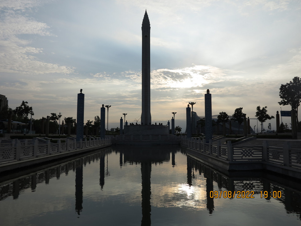 吃完饭,带着老妈宝宝去中阿之轴,看看网红的纪念碑,这里是团结路,整体有2公里多,分为3个相对独立的人文景观区,暨中阿友好标志景观区、中阿文化交融景观区、中国回族文化景观区,中阿之轴展现出阿拉伯国家悠久的历史文化和中阿友谊源远流长,拍照打卡。