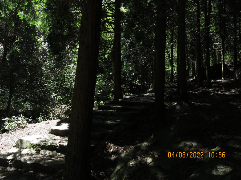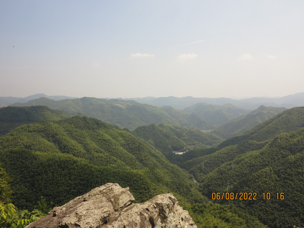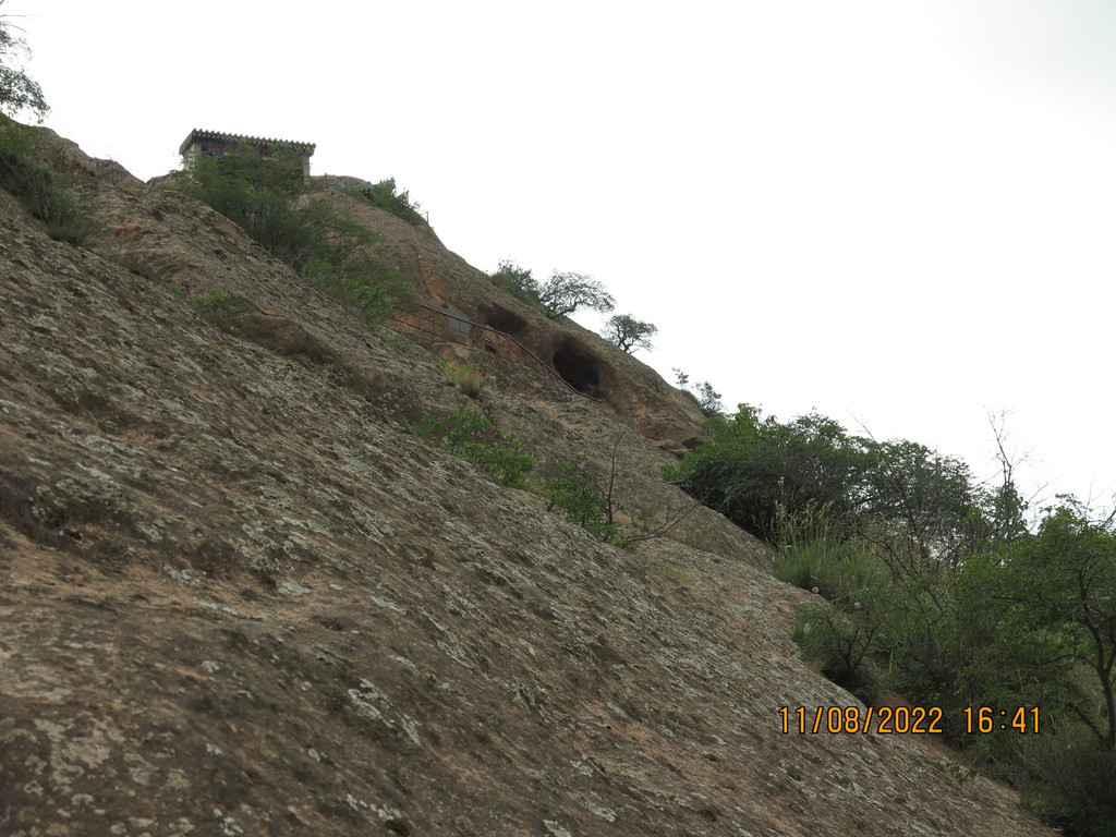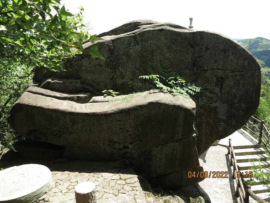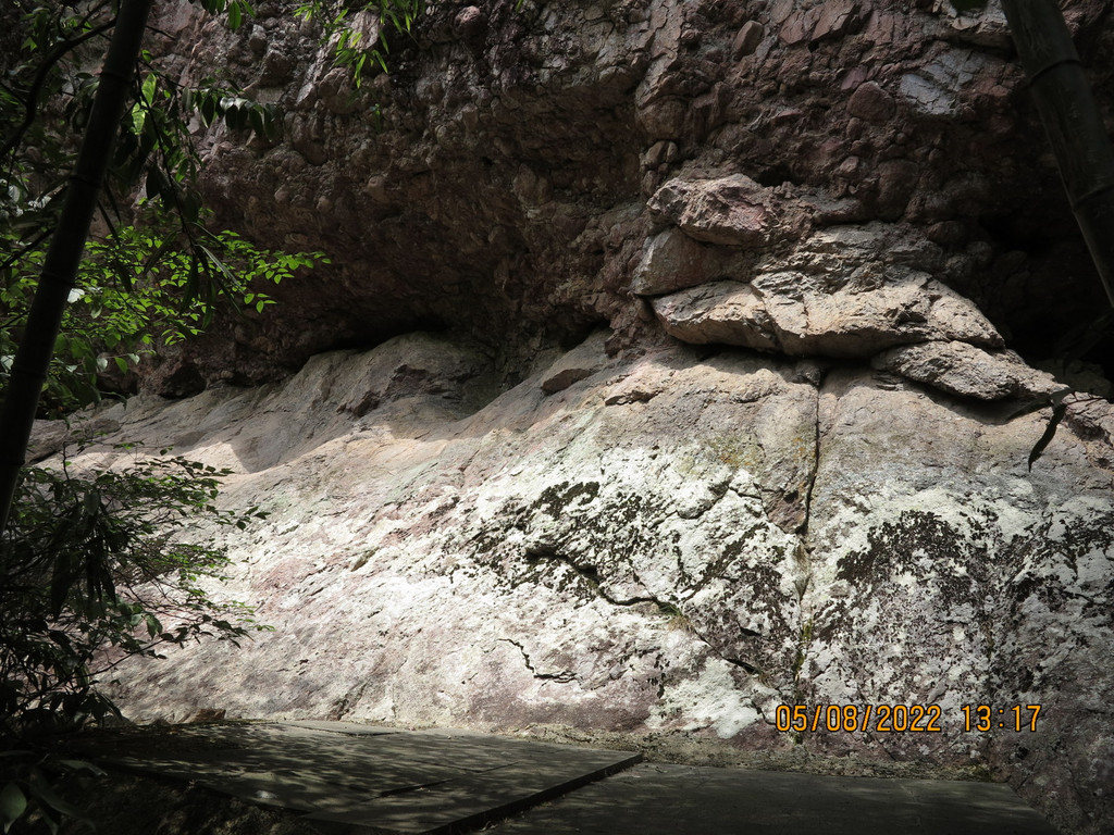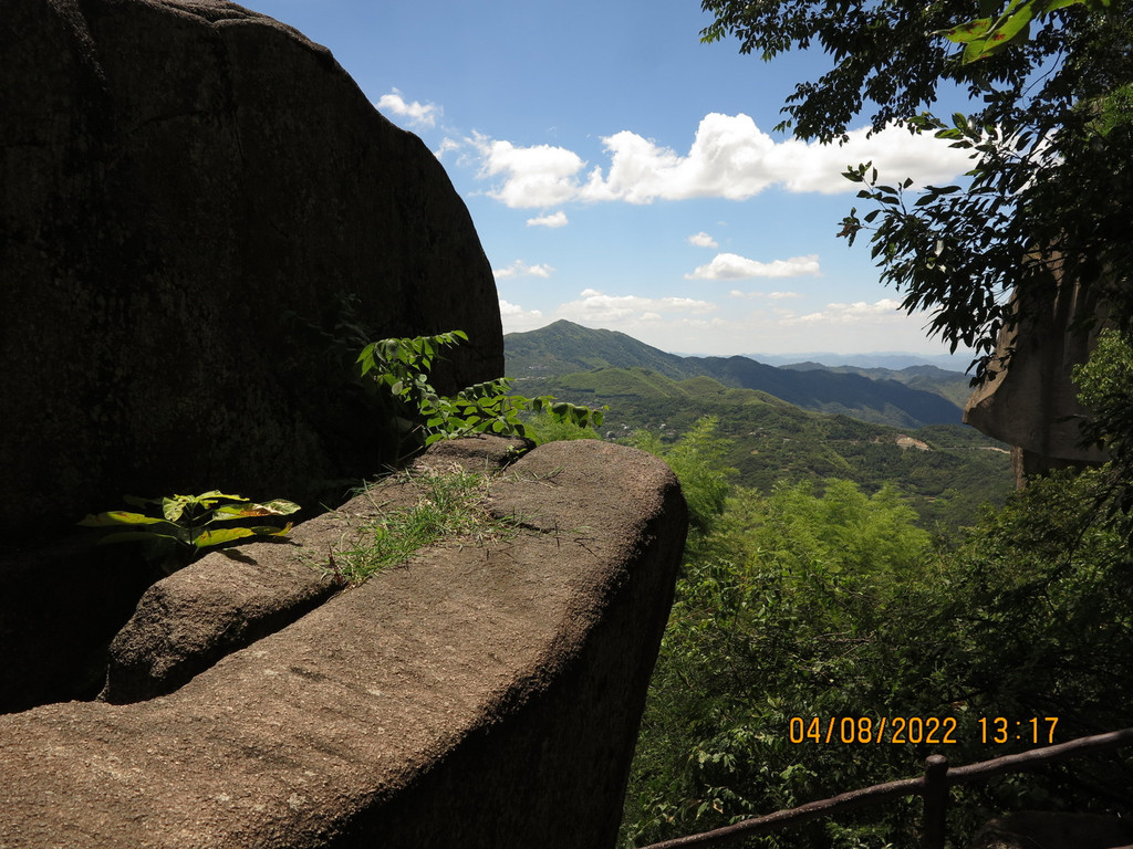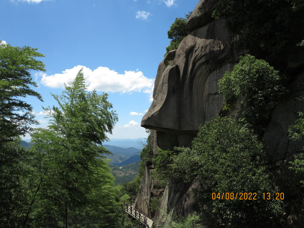 游览完四明湖开始折返,去了今天最后一个景点四窗岩,这个地方号称四明山第一名胜,老蒋都来过两次。但目前这里几乎未开发,先开车到了大岩下的水电站,然后沿着台阶土路一路往里走,几乎没有人,一公里多点的路有点累,到了四窗岩下看到的是168级直直的台阶,一口气爬上去,打卡四窗岩,老妈在水电站进口打了退堂鼓,我只能独自看看。这里是华山乡东南大俞顶上,这里有一块长方形悬崖。崖腰有洞,内有四穴,远处仰望犹如楼之窗户,以通日月之光,四窗岩故得是名。崖不好爬,我没有爬进去,据说四明山的山名也由这里得名。