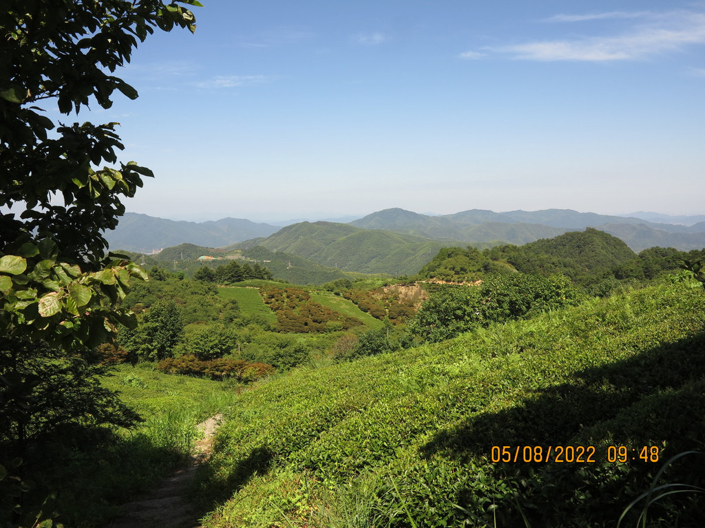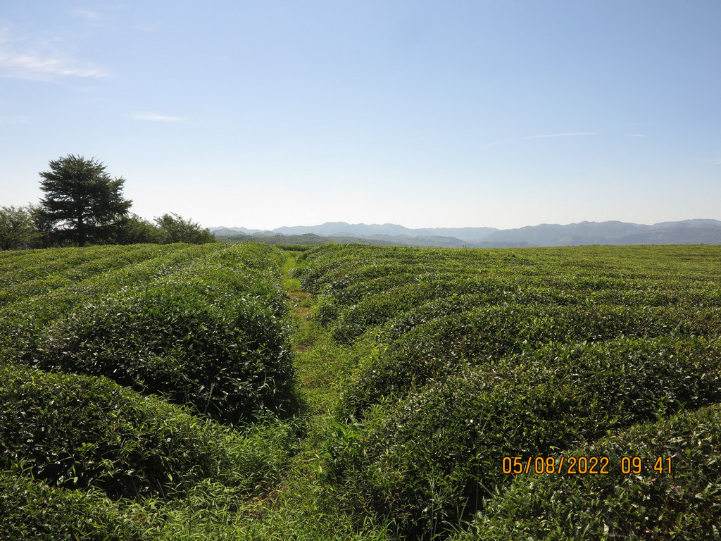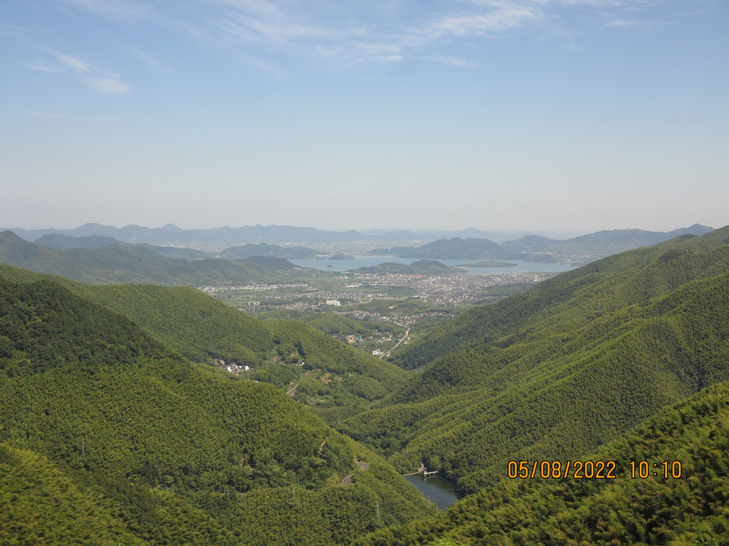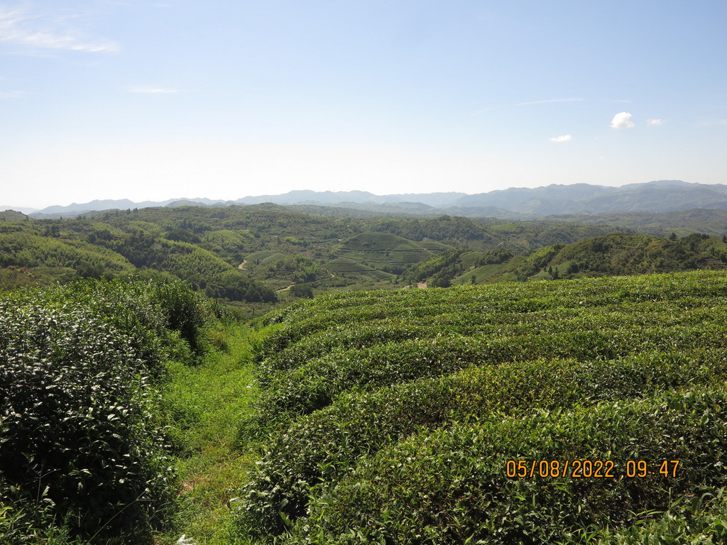 第三天,沿着四明山的公路一路向北,先去姚江源头—万亩茶园,登山茶园顶,这里视野极好,看看日出日落真的极好,老妈这里打个卡。