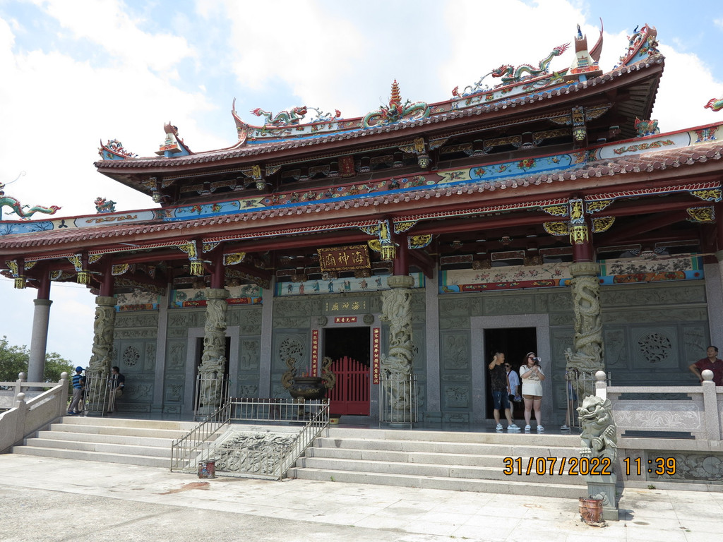 沿路可以一直走到海边栈道,栈道修到海里,沿着栈道可以绕岛行走,直达海神庙,天气太热,看看风景也就没多走。气象台不开门,无法进入,回头继续开车去了海神庙,这里也就看看走走,拜拜妈祖,沿路看看炮台,广场,不远一直到灯塔,灯塔是这里的全国文保单位,打卡看看,海景也算可以,离岛前顺路去东门老街转了一圈,炎热的天气,这里没啥人,路过看看。