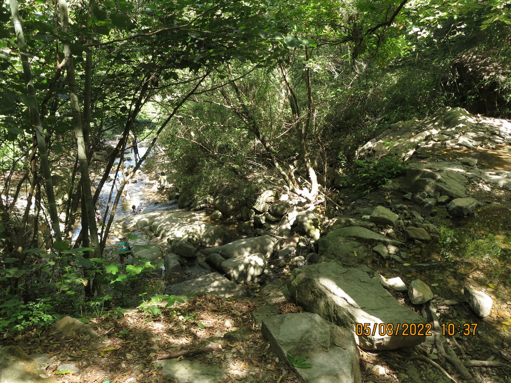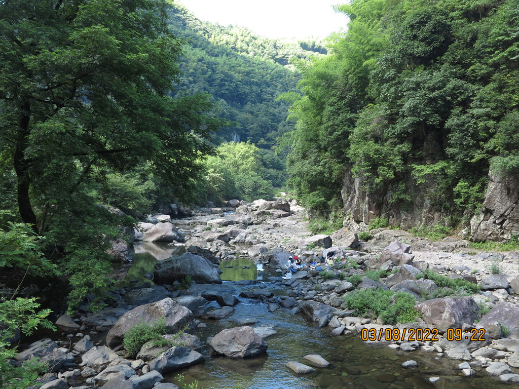 第二站的水帘洞就是几年前第一次带宝宝来四明山住的6944酒店边上的那个景点,来回徒步3公里,看一块巨石鹁鸪岩和水帘洞,今年水太少了,权当打卡。