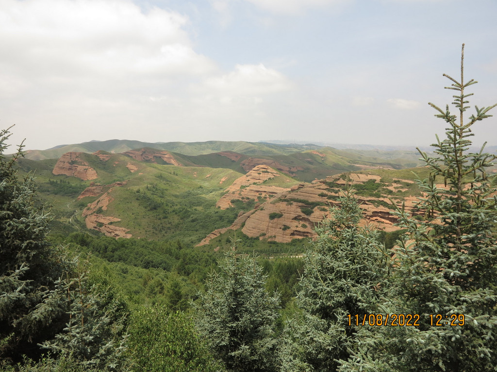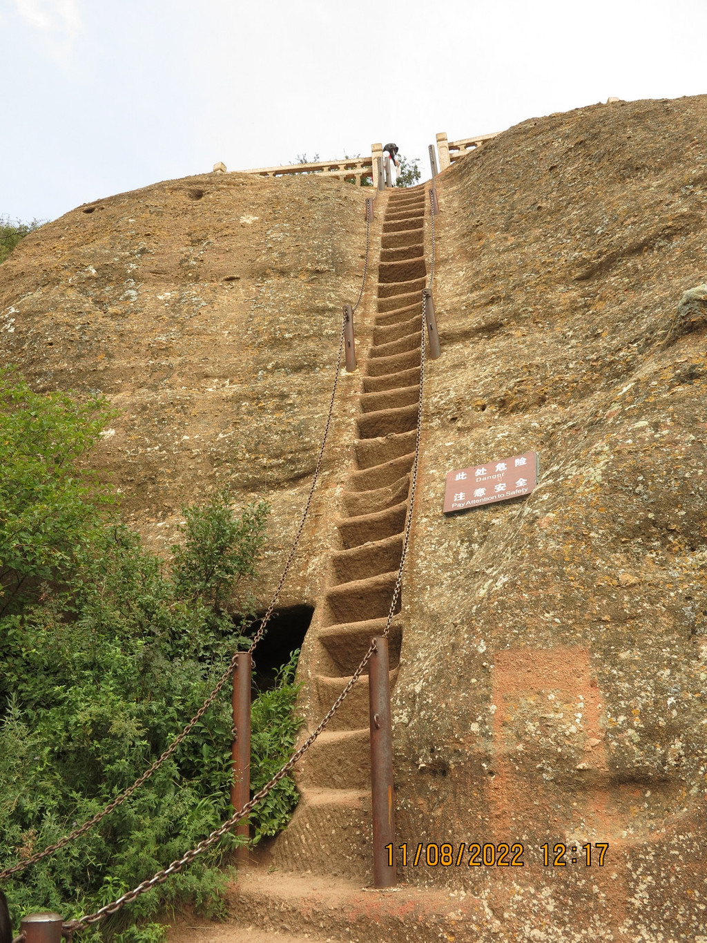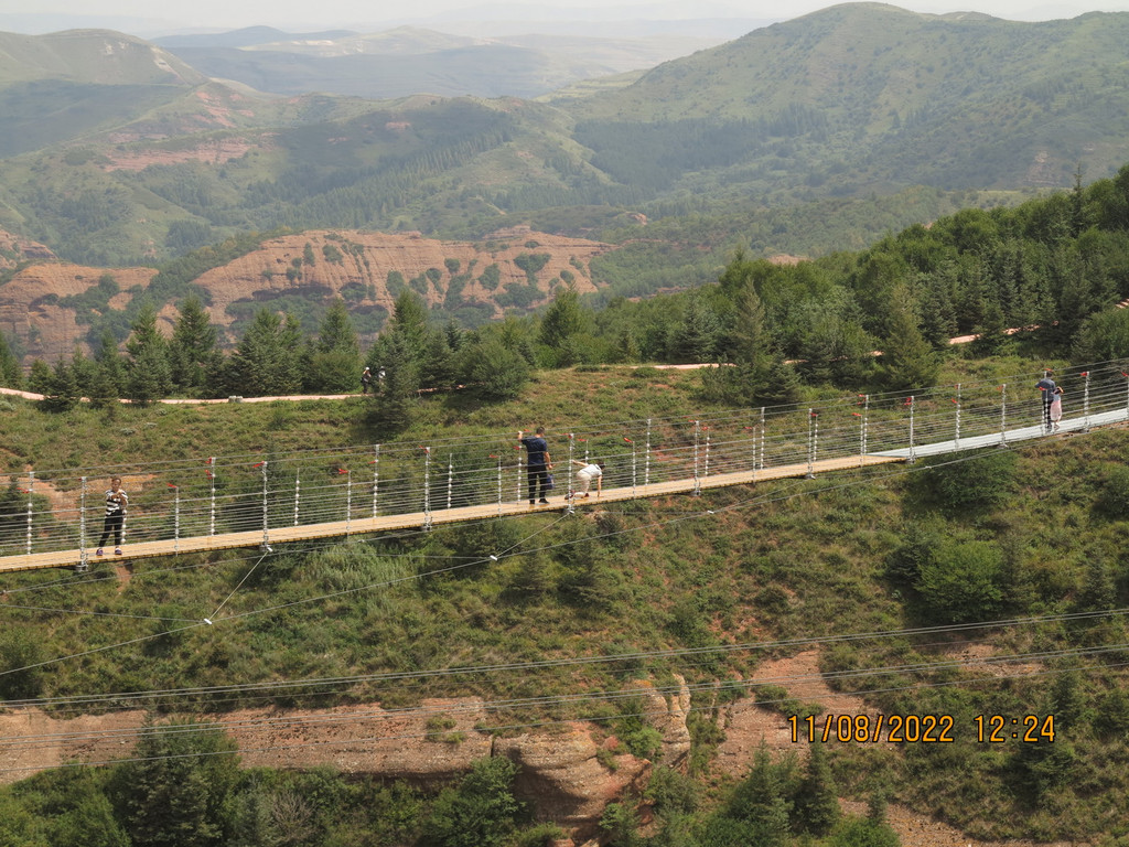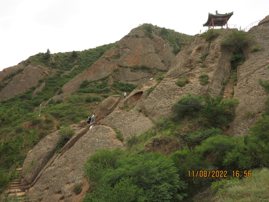 一早固原出发去看火石寨和须弥山。火石寨在西吉县境内,由于它的山峦呈现暗红色,尤其在绿树的掩映下,如同一团团燃烧的火焰,因而取名火石寨。景观车拉着我们到云台山下,开始爬山,爬山不算累,有些直上直下的楼梯栈道,一点点小惊险,风景还是不错的,山上也有石窟建筑,和须弥山石窟一脉相承。山顶滑索、玻璃桥看看没敢尝试。一圈走完不算累,最后的穆柯寨也非常漂亮。
