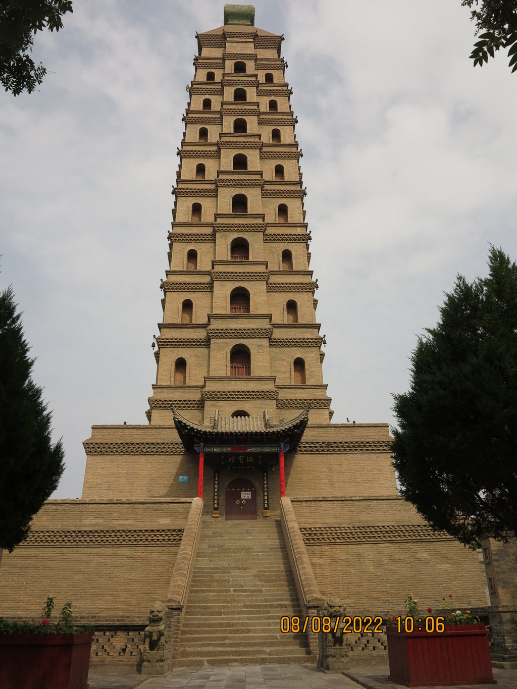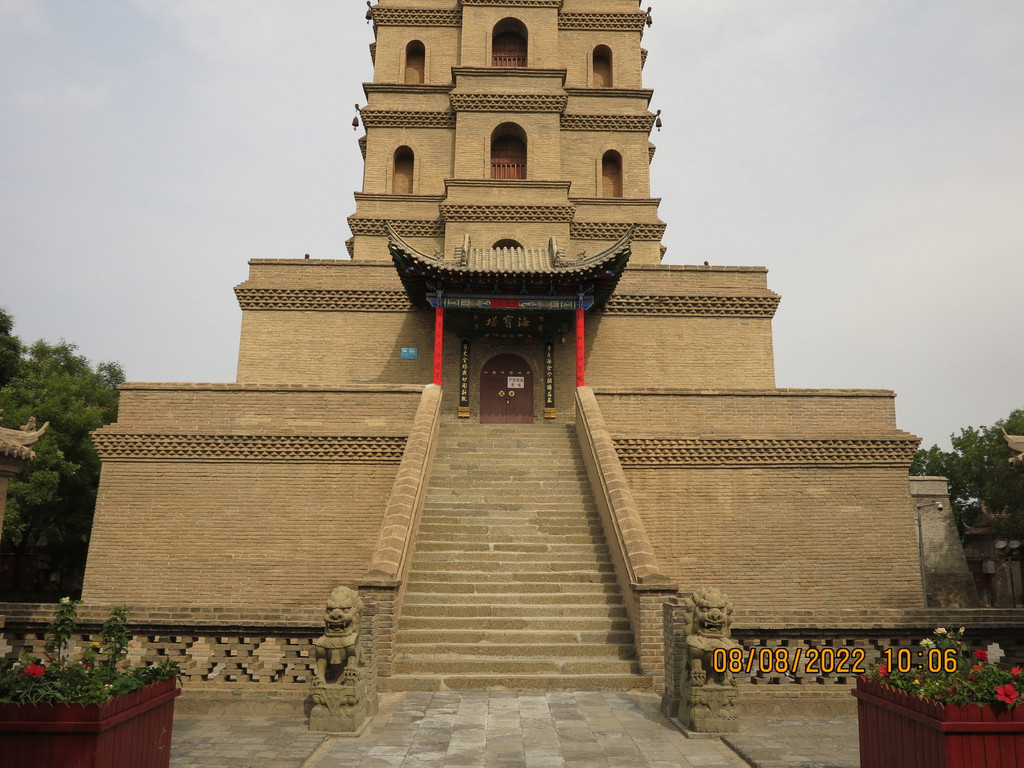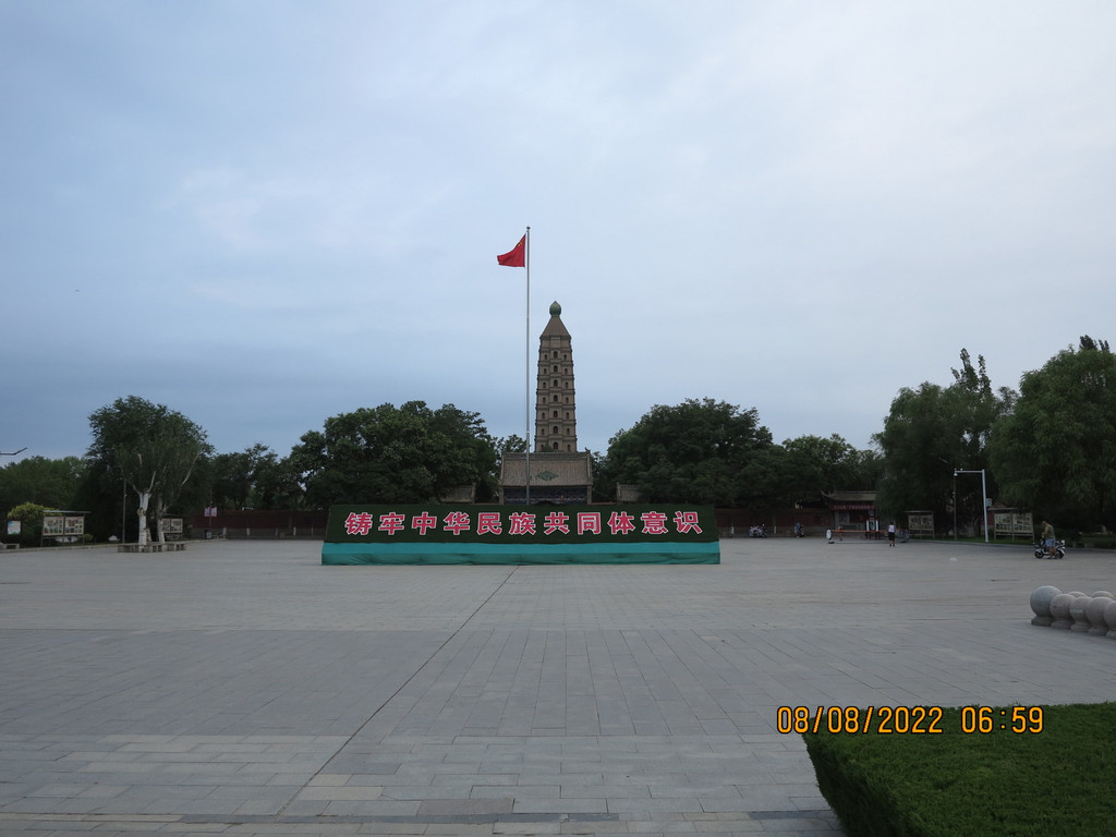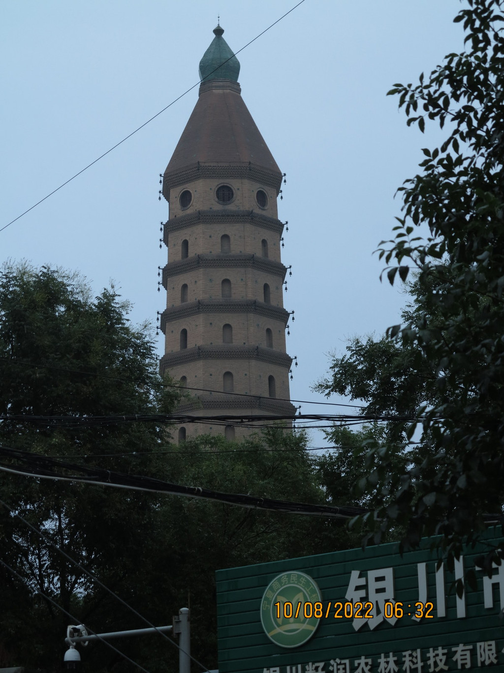 吃完早饭带上家属直奔海宝塔。这里是61年的国保单位,必须来看看,这里位于海宝塔寺内,门口是海宝公园,面积挺大,边上就是停车场,门票10元只收现金。海宝塔始建于北朝晚期至隋唐年间,现在好像是重修于清代,这塔和我之前看过的中原的塔确实不一样,感觉是一层层的房子堆叠起来,九层十一级,顶上又有点伊斯兰感觉,全部由青砖砌筑,通高53.9米。塔不让攀登,有点遗憾。看介绍说在银川当地称它为北塔,于南塔(承天寺塔)遥相呼应,建筑上是楼阁式砖塔,是汉地佛教与藏传佛教建筑形式相互融合,并吸收当地伊斯兰教传统建筑特色而产生的,是汉、藏、回民族团结的历史见证。