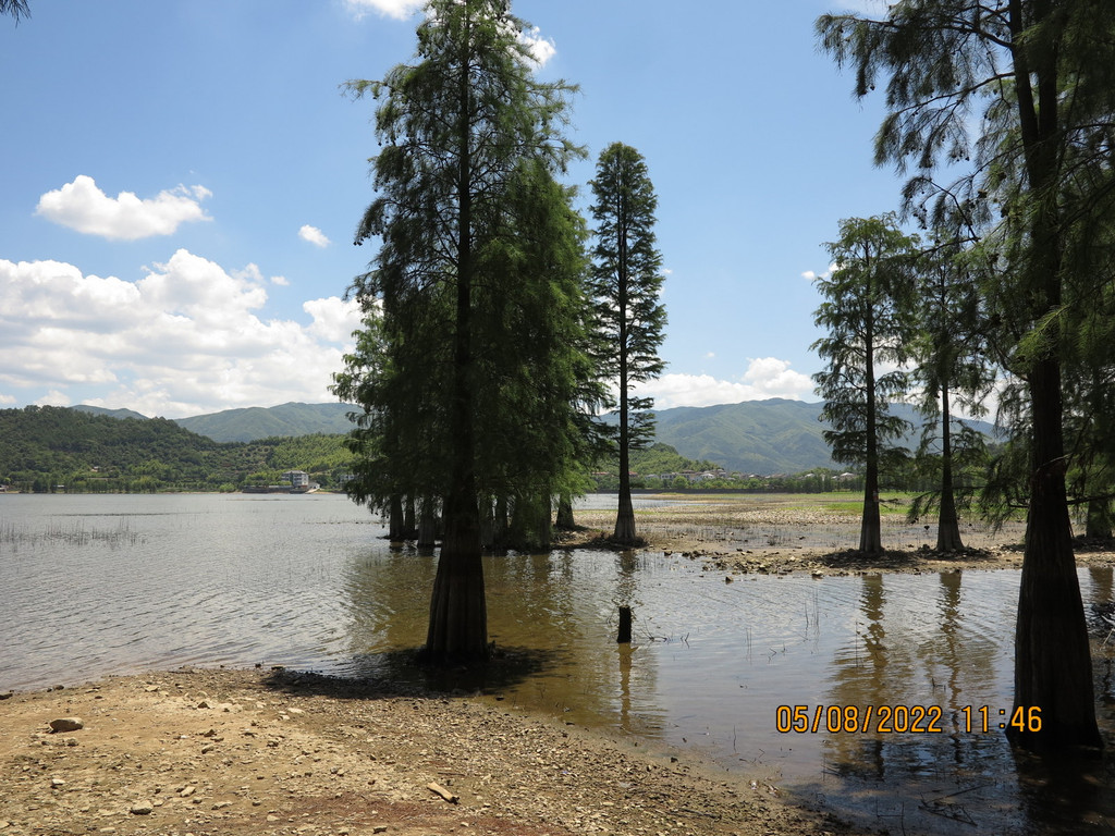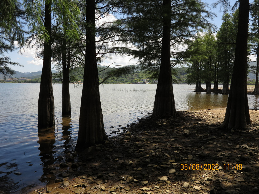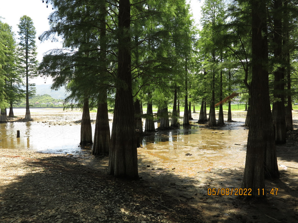 四明湖不小,我们选择去四明湖水杉湿地看看,穿过一个村子,湖边走走,但今年真的是干旱,水杉大部分裸露在滩涂上,这里拍照很漂亮,到此一游。