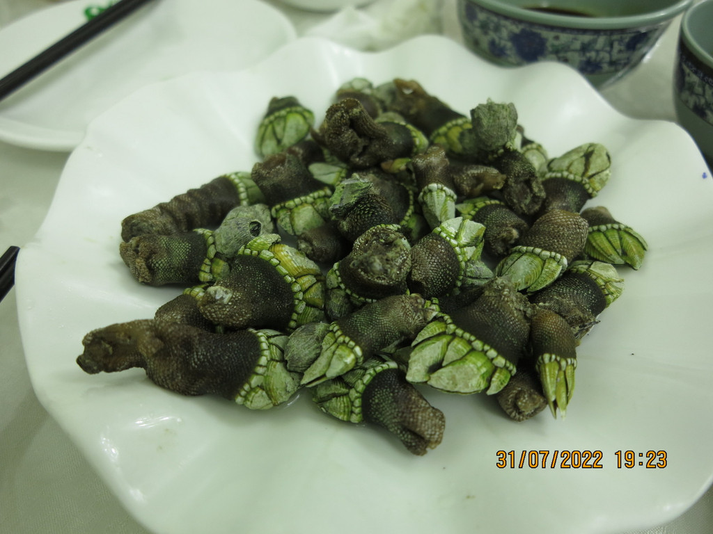 日落前回到酒店,继续鱼满仓吃饭,居然看到了龟足,这个刚刚在海错图里看到介绍的海鲜,宝宝也认识,必须尝试一下,口味清奇,非常满足。