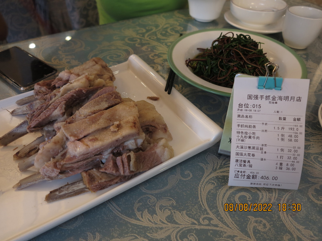 回到宁夏市区不算太晚,国强手抓贵宾楼店,心心念的宁夏羊肉,吃不完打包,回酒店休息。