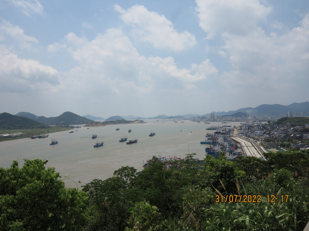 一觉睡醒出发,出发东门岛,天气炎热,象山开鱼还有两天,渔港里停满渔船。驱车个把小时,开过铜瓦门大桥,就到了东门岛。一过大桥,先走了左边的一条路上山,可以到达山上气象台。这里有铜瓦门摄影点,开鱼时可以看渔船集体出海,估计非常壮观。
