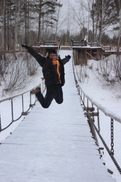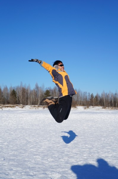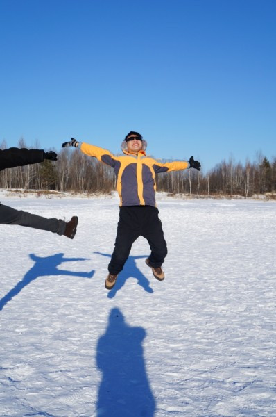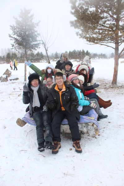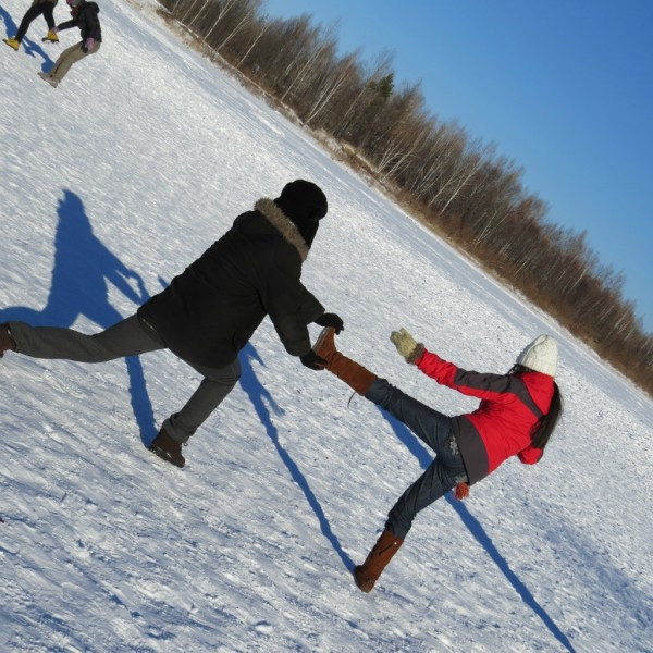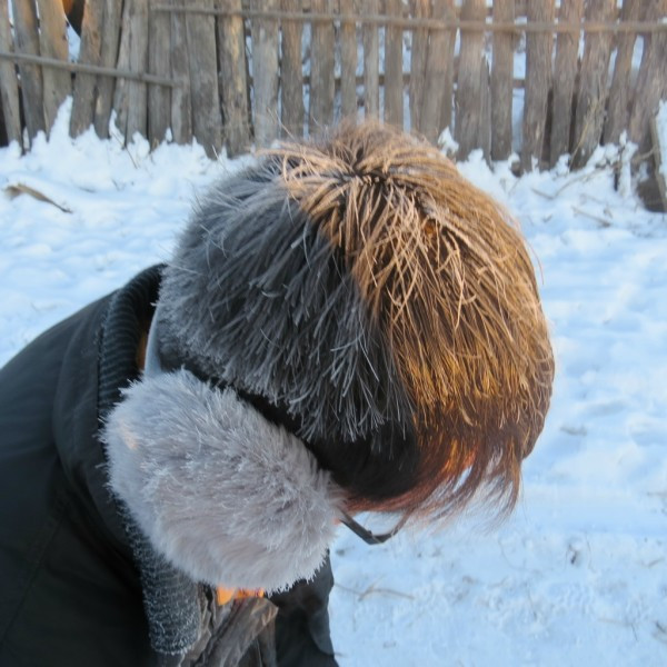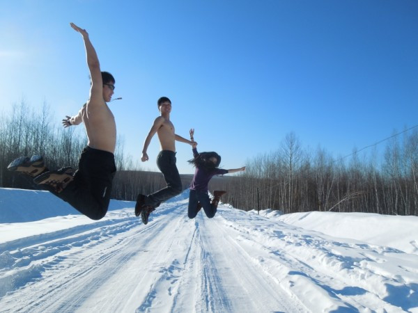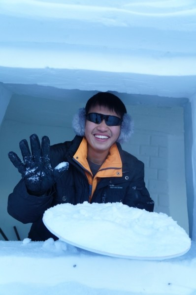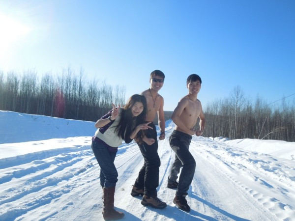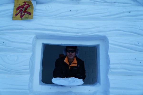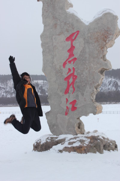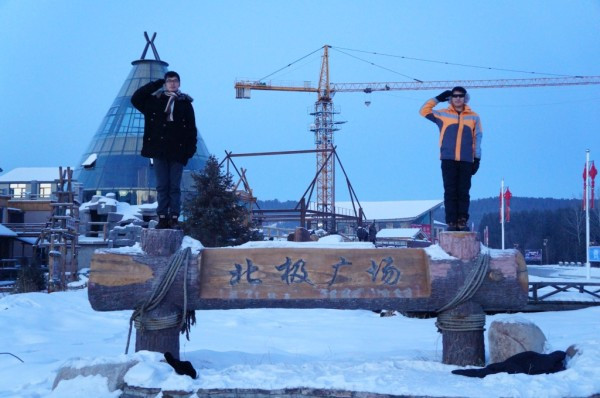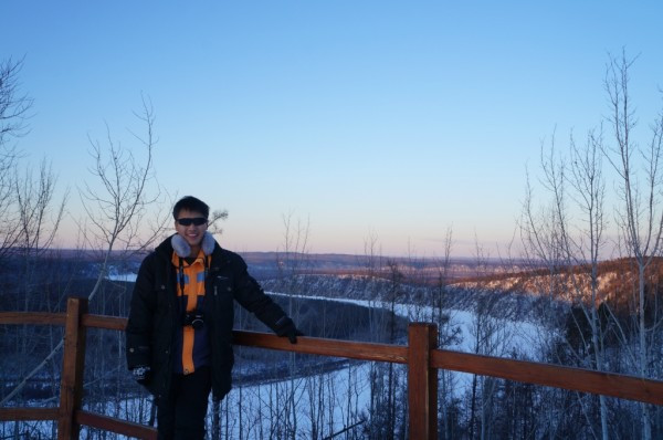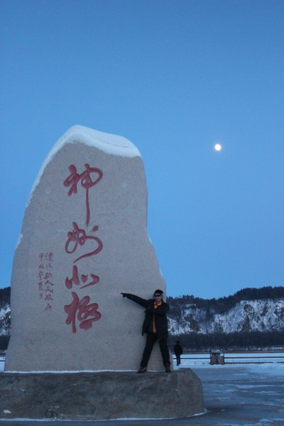 顺便说一下,就在我照片的右边不远,河边上有个雪垒起来的房子,上去有两个滑道,直到黑龙江上边,超级爽,我用了一个门的木板垫在屁股下面,到底的时候木板都被滑散架了,可以想象速度多快,刺激的不得了。晚上回去就是收拾屋子洗漱吃饭,但说真的,北极村住得真有点冷,我们三个人住一个屋子都冻的不行。