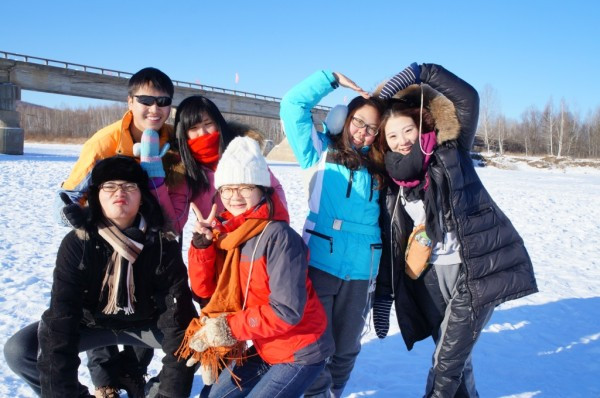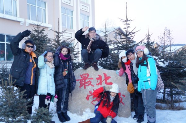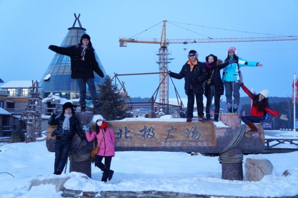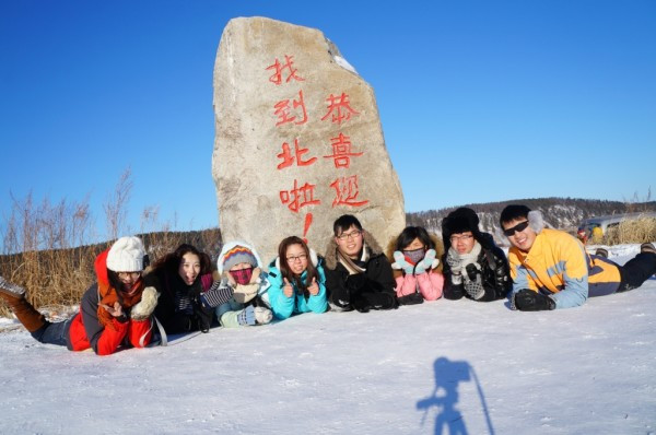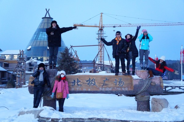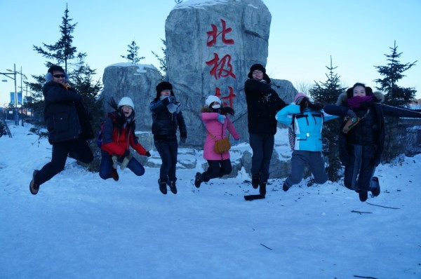 抵达北极村(门票六十,查的不严,你就随便拿个学生证让卖票的对上人就行了),放好东西后,全体出动逛大街,来个合照