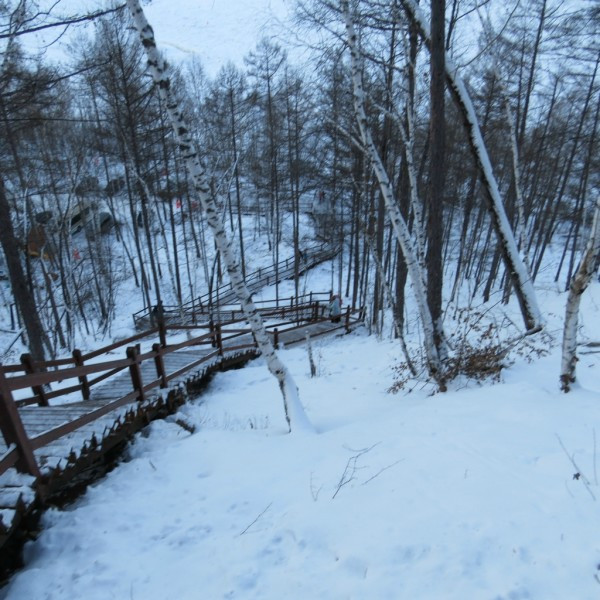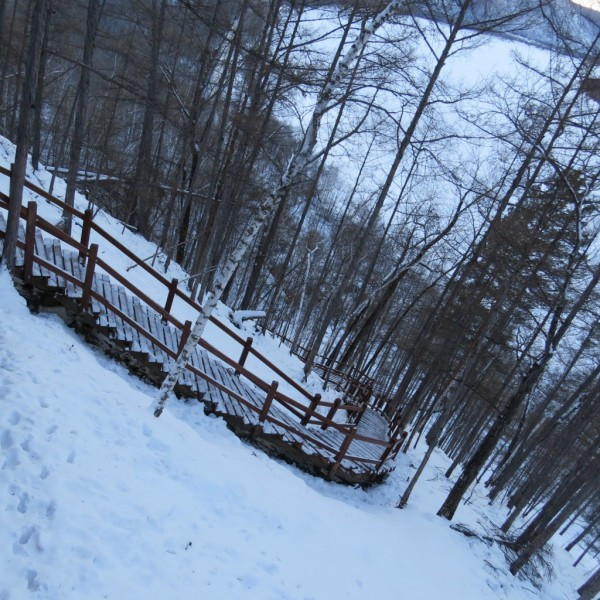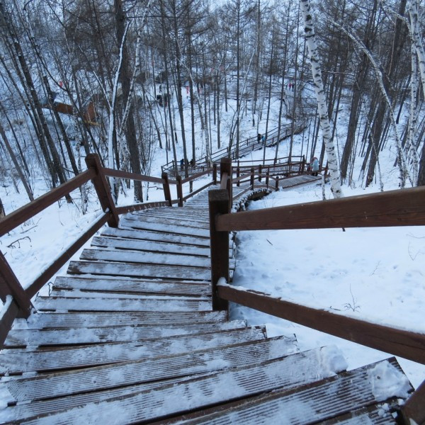 俯瞰台阶。顺便说一下,有雪,这下山台阶真不是一般的滑,最好走慢点冰有个人扶着,要不你可能就一步到底了